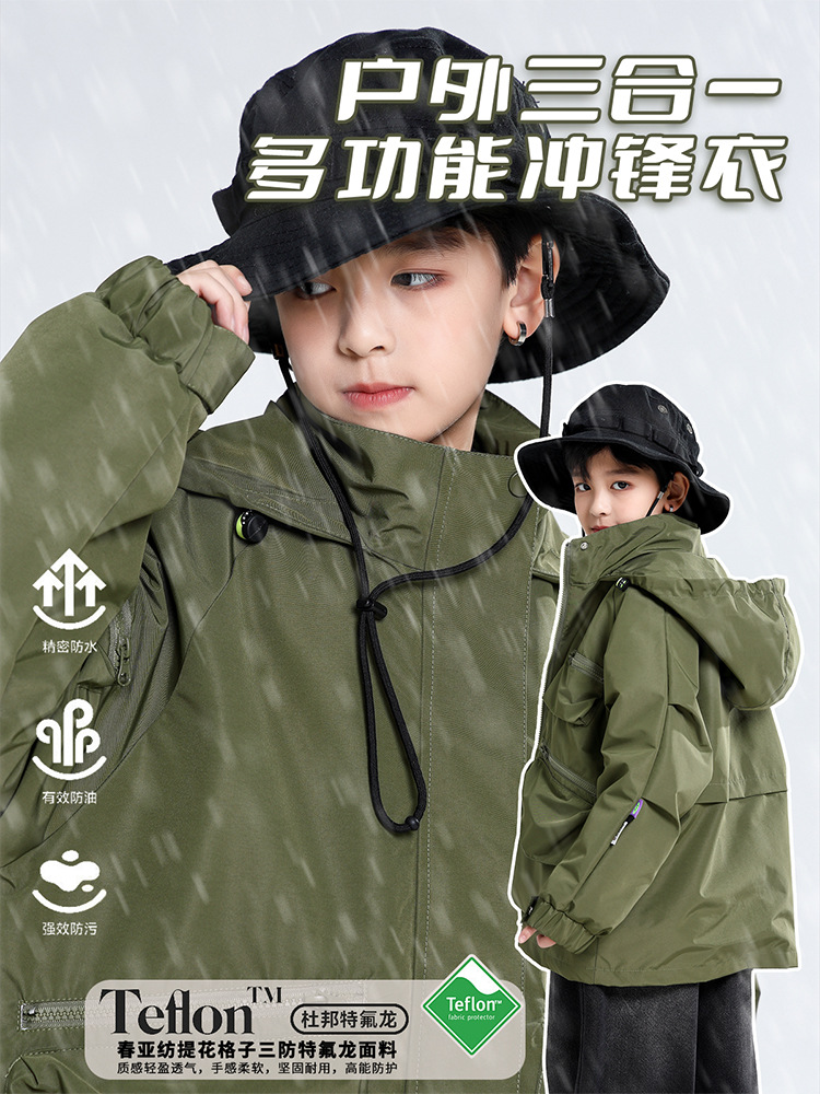 어린이 듀폰 3 방언 충전 옷 가을과 겨울 새 소년 3 대 1 분리 가능한 후드 재킷 1 개 옷 3 개 착용