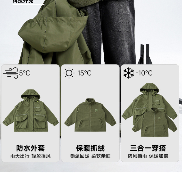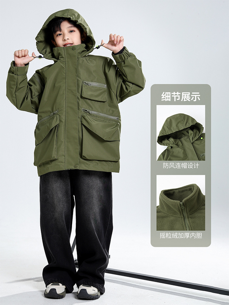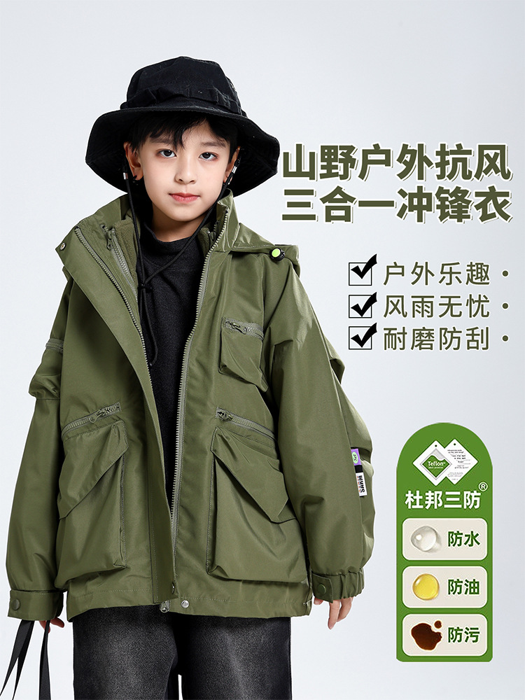 어린이 듀폰 3 방언 충전 옷 가을과 겨울 새 소년 3 대 1 분리 가능한 후드 재킷 1 개 옷 3 개 착용스토어 가기