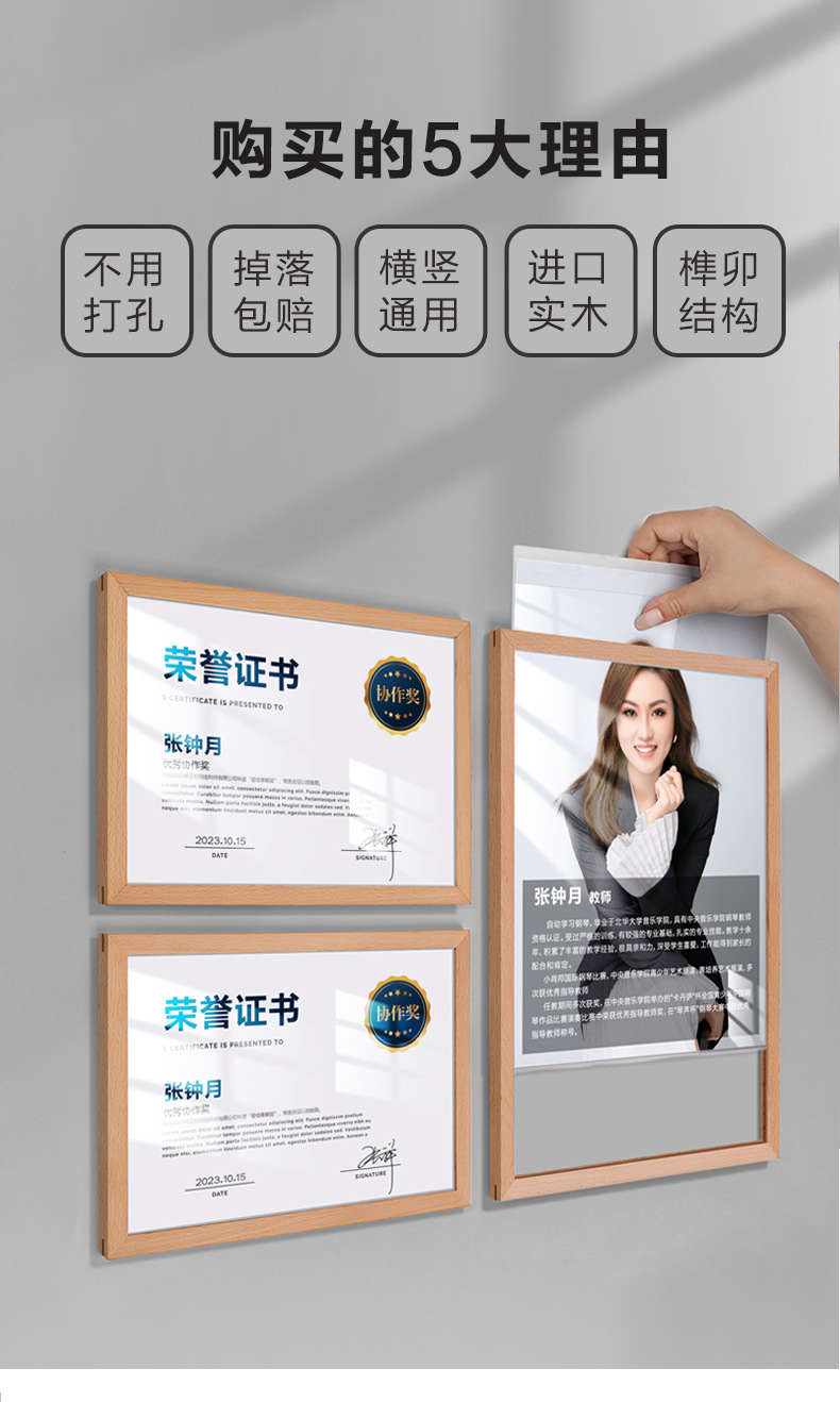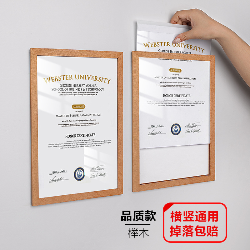 A4 특허 인증서 프레임 솔리드 우드 포토 프레임 교수형 벽 없음 펀치 a3 비즈니스 라이센스 프레임 상 명예 벽 디스플레이 벽