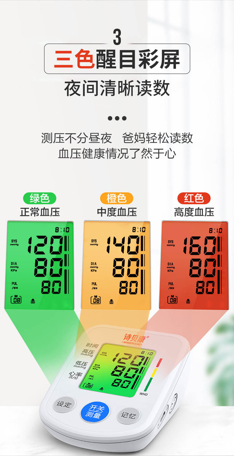 Shibeikang 충전식 전자 sphygmomanometer 자동 혈압 측정 기기 가정용 고정밀 팔 의료 팔스토어 가기