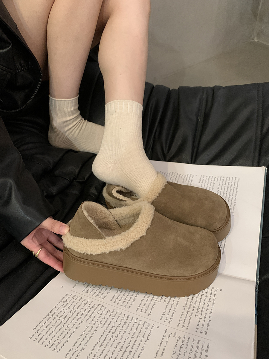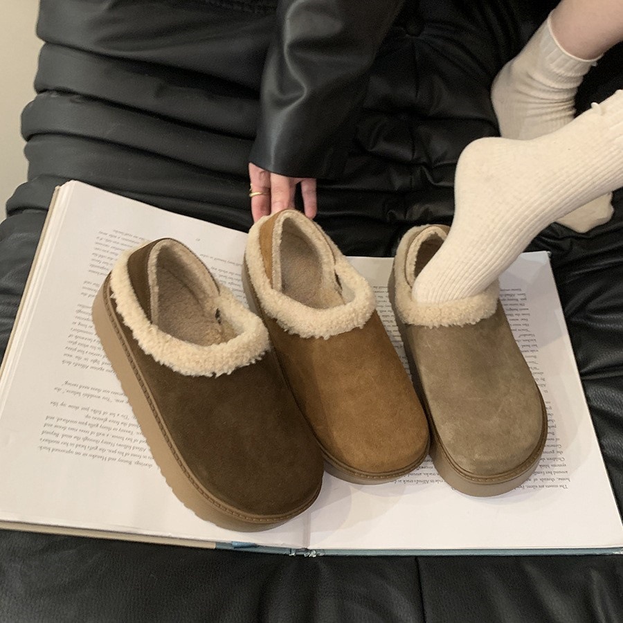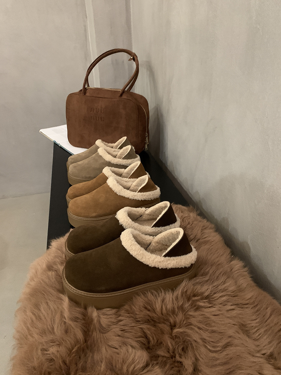 프로스트 레트로 투웨어 마오 마오 신발 여성 2024 가을과 겨울 새 기모 Birkenneth 신발은 페달 두꺼운 밑면 신발을 신습니다.스토어 가기