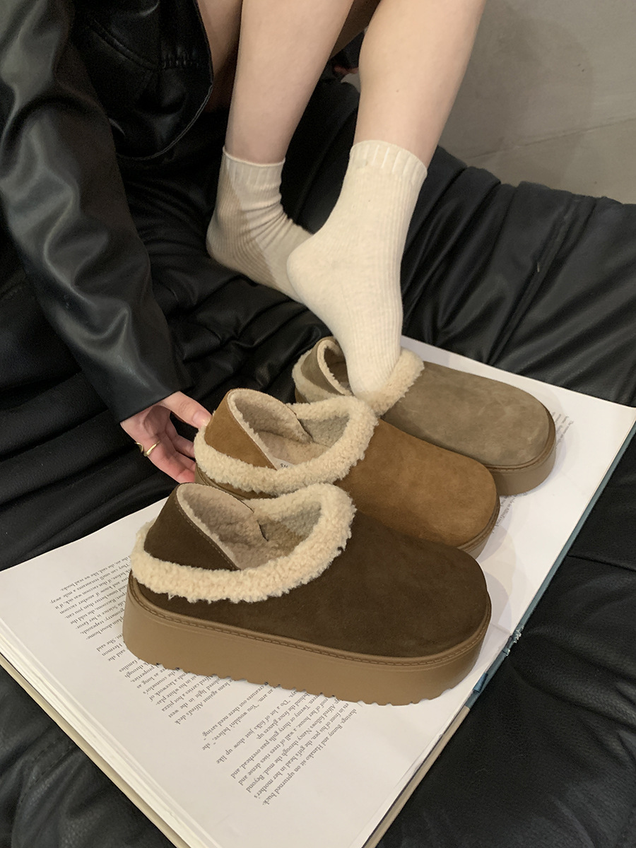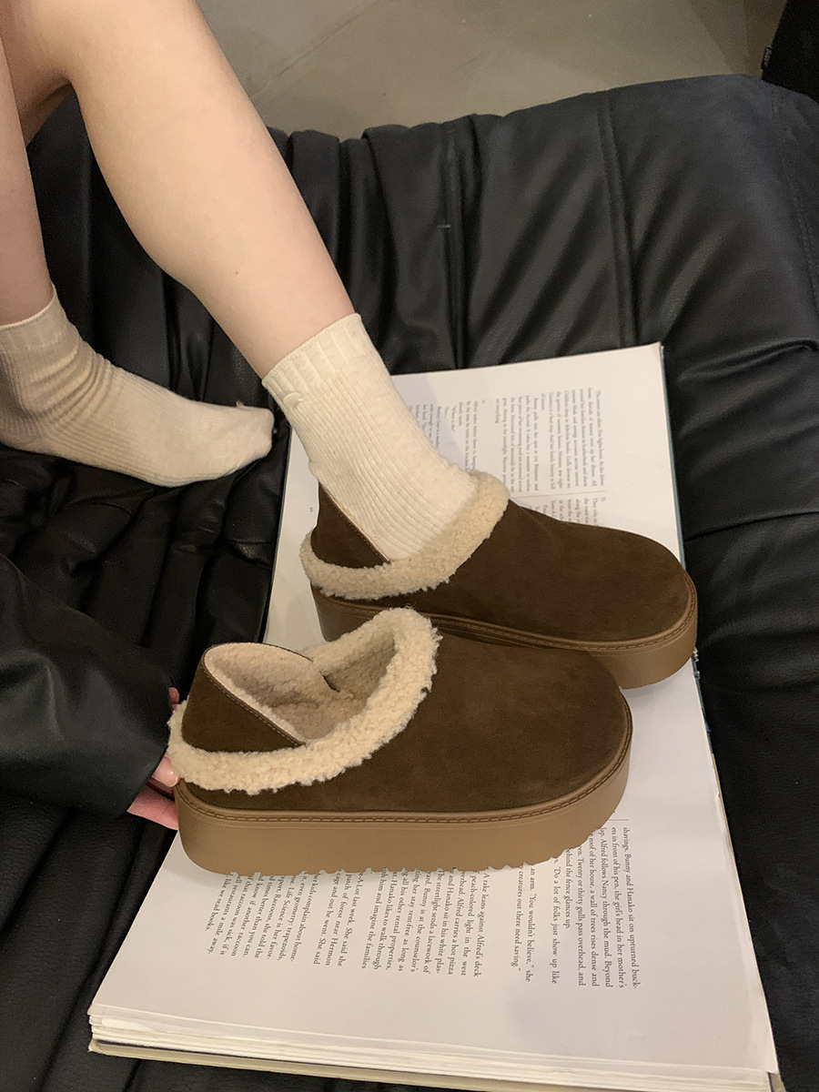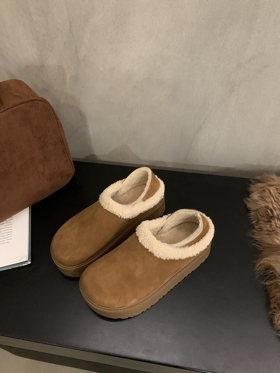 프로스트 레트로 투웨어 마오 마오 신발 여성 2024 가을과 겨울 새 기모 Birkenneth 신발은 페달 두꺼운 밑면 신발을 신습니다.스토어 가기