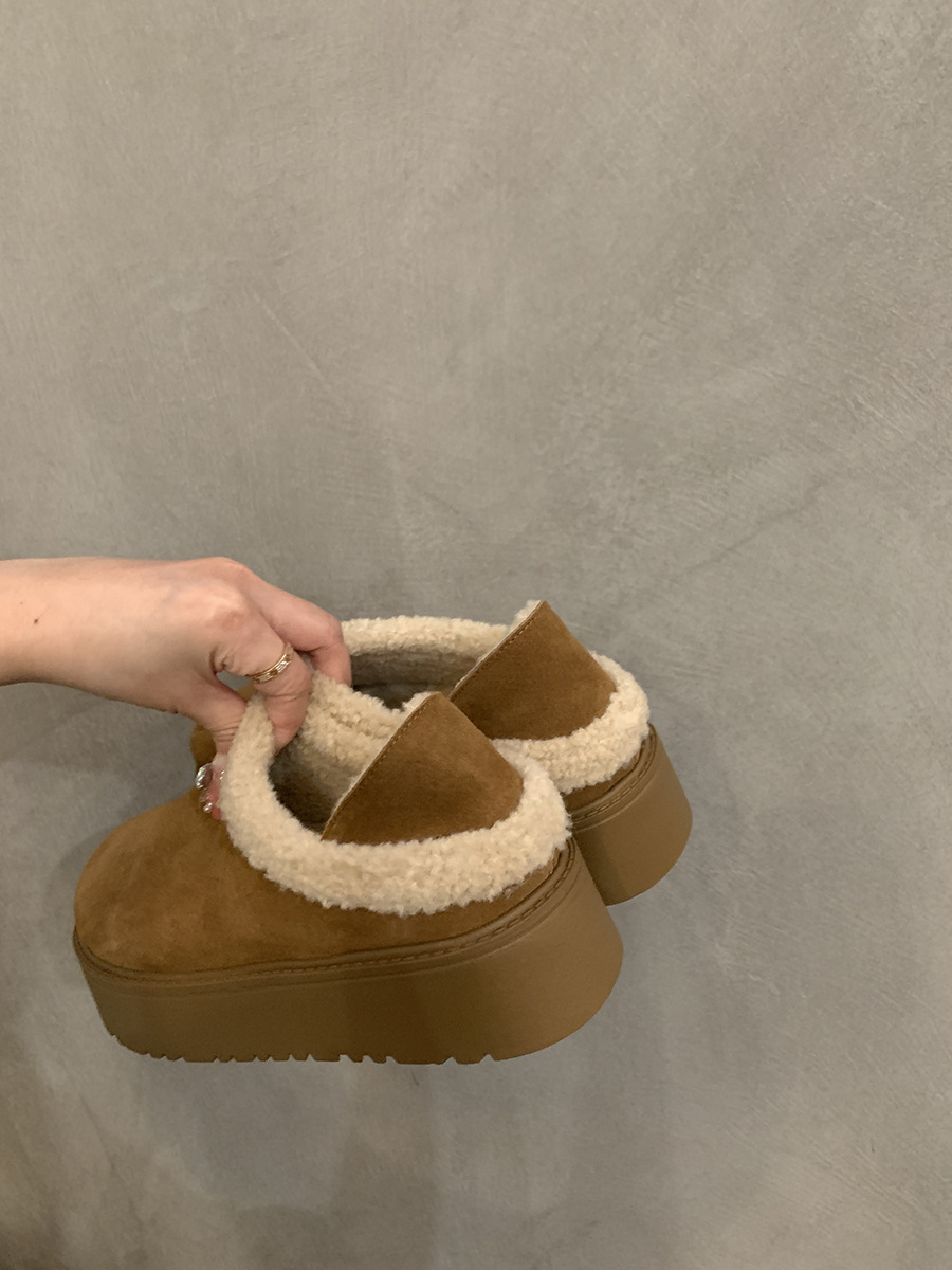프로스트 레트로 투웨어 마오 마오 신발 여성 2024 가을과 겨울 새 기모 Birkenneth 신발은 페달 두꺼운 밑면 신발을 신습니다.