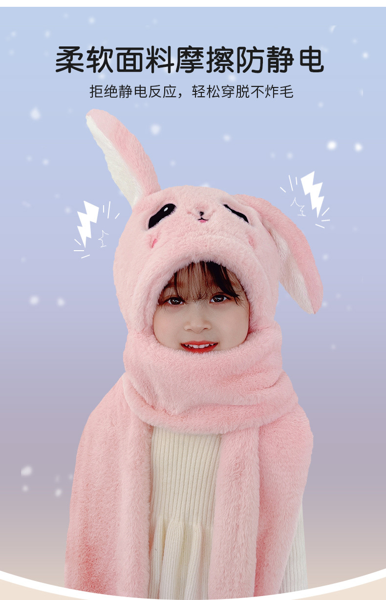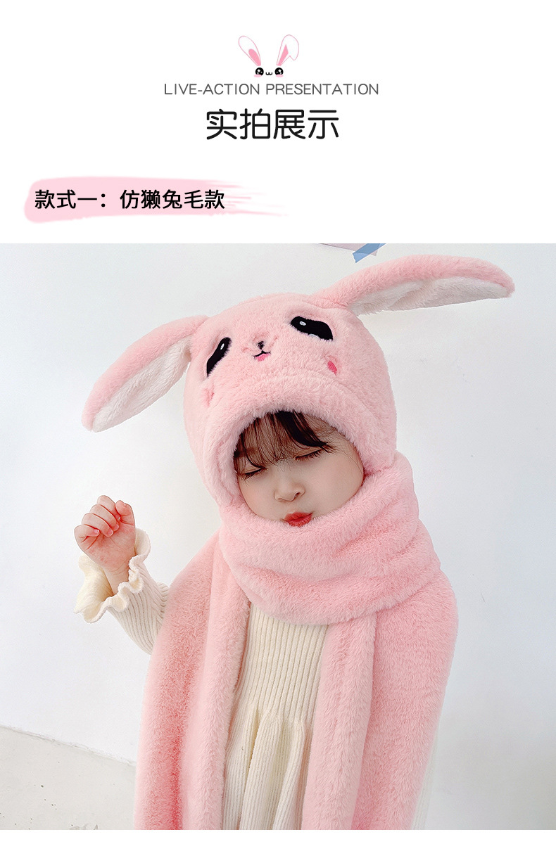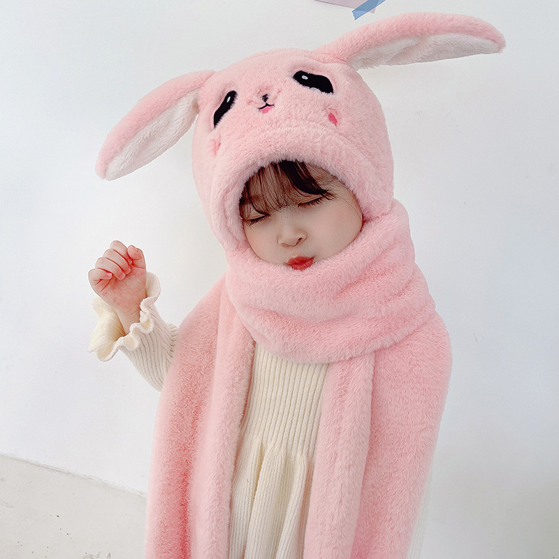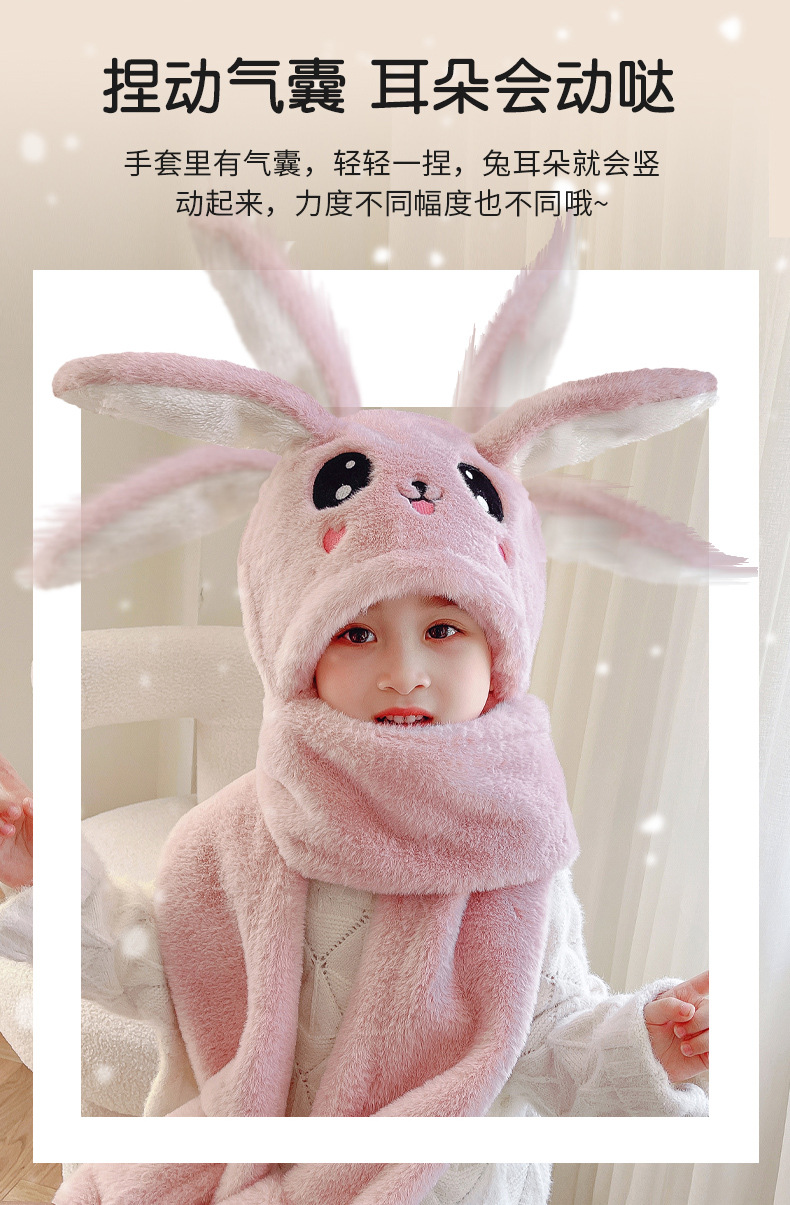 동그란 귀가 움직일 수 있는 어린이용 모자, 가을 겨울 귀여운 두꺼운 따뜻한 스카프, 일체형 후드 장갑, 아기 모자