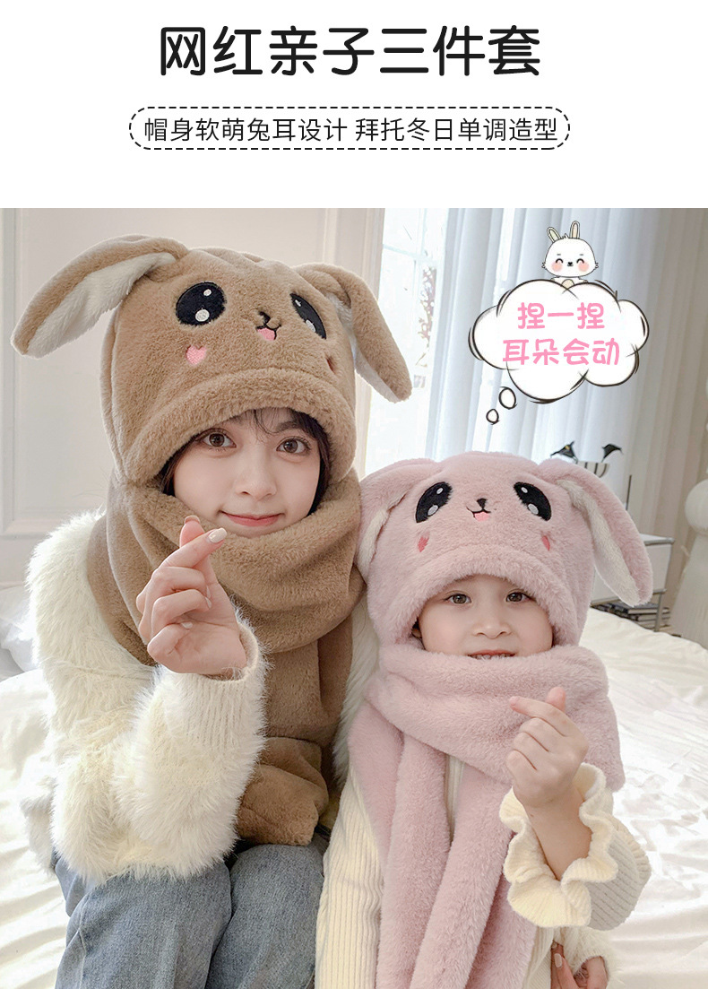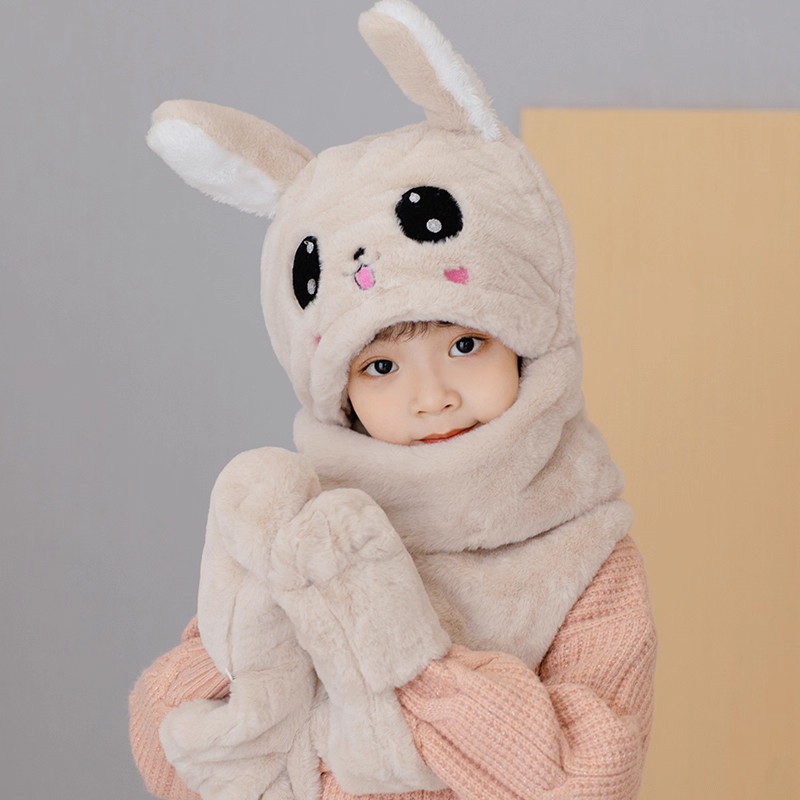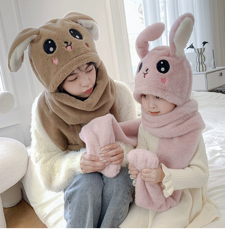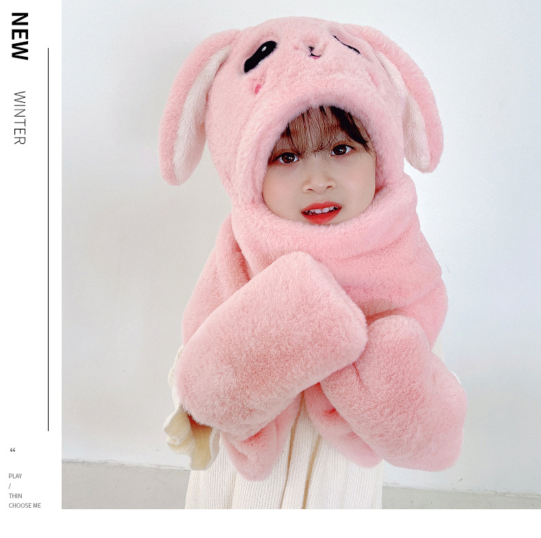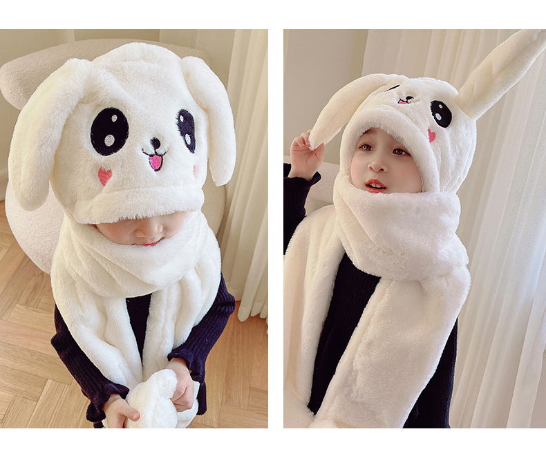 동그란 귀가 움직일 수 있는 어린이용 모자, 가을 겨울 귀여운 두꺼운 따뜻한 스카프, 일체형 후드 장갑, 아기 모자