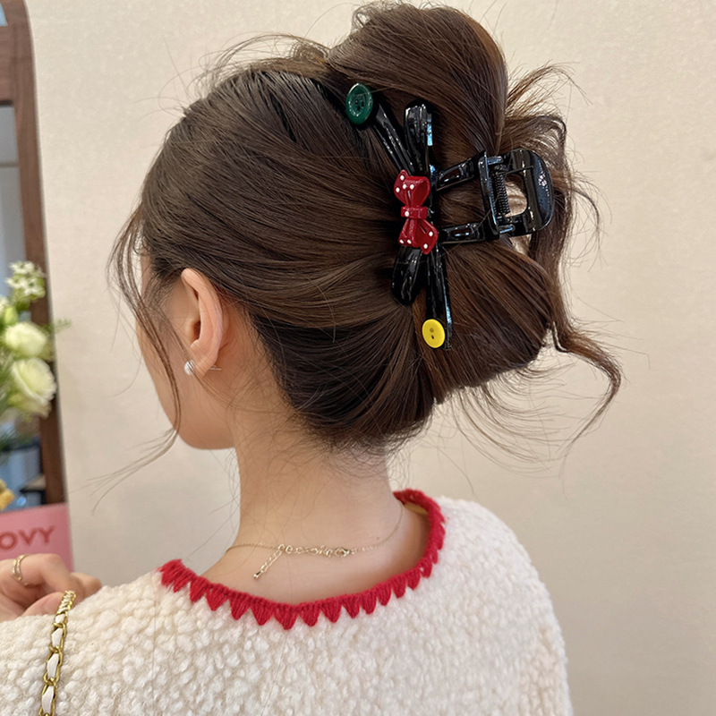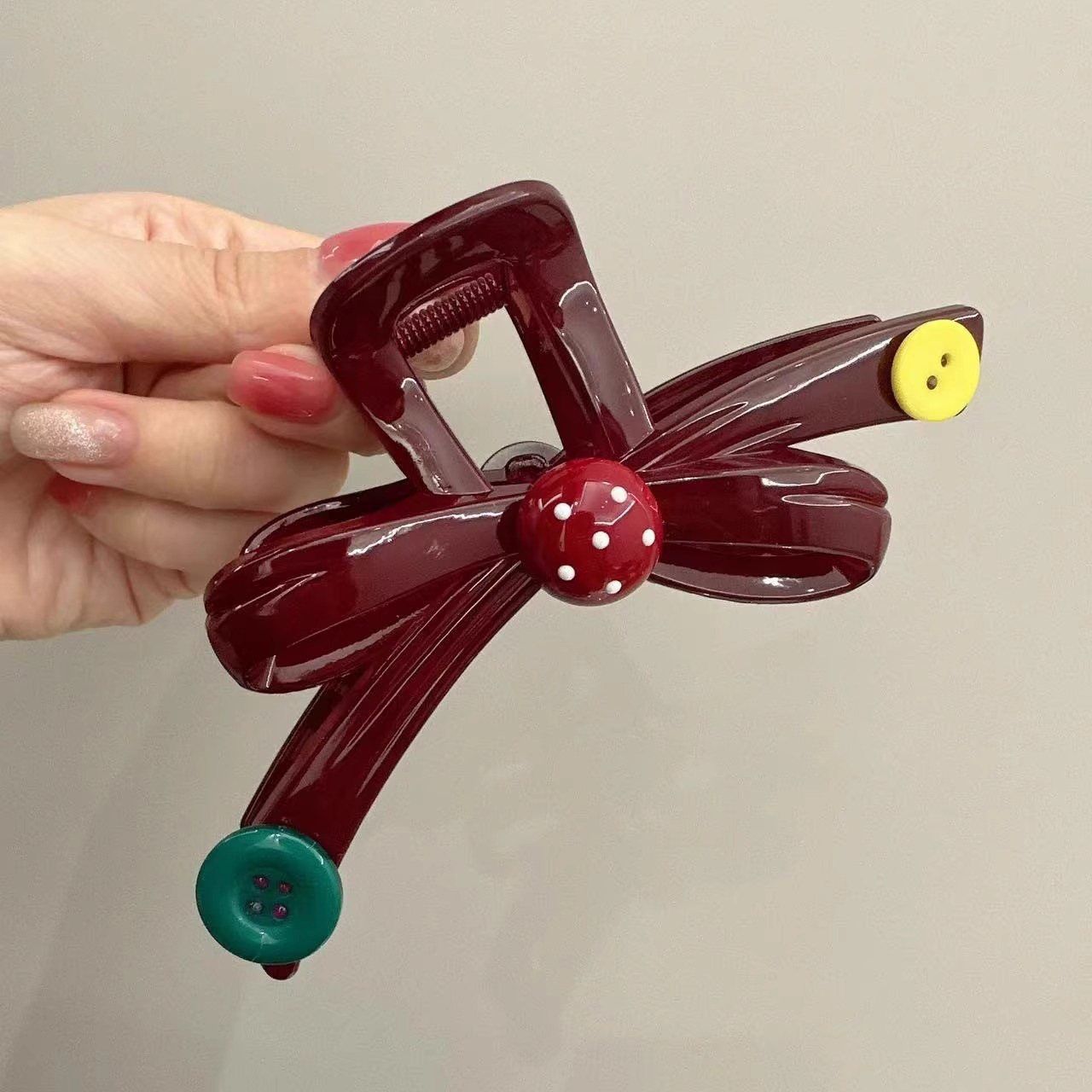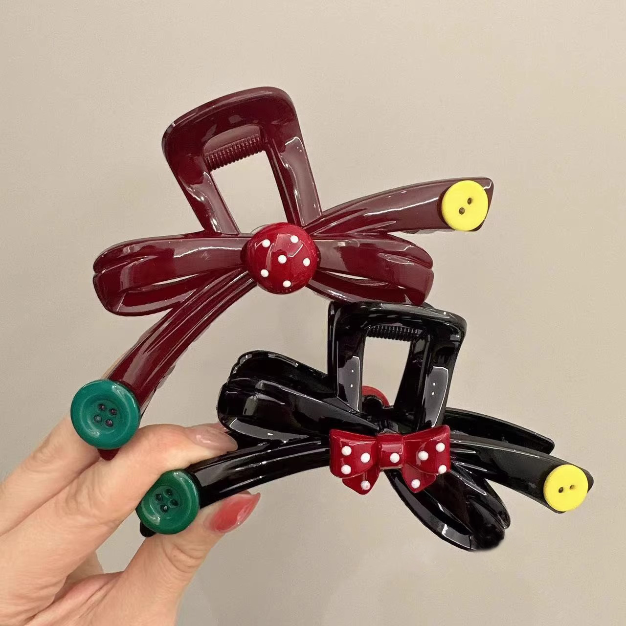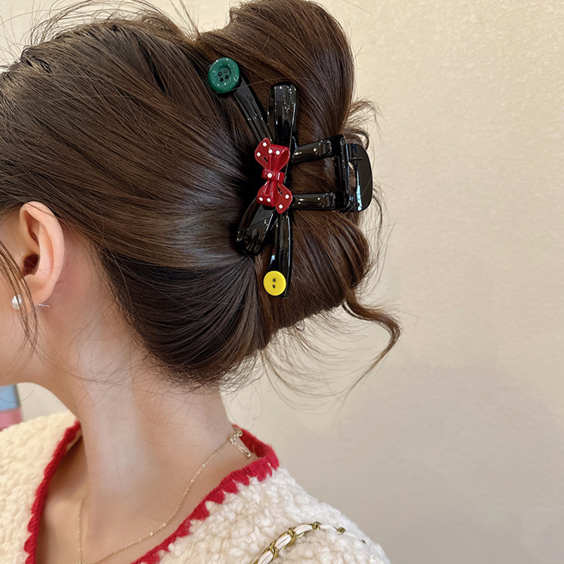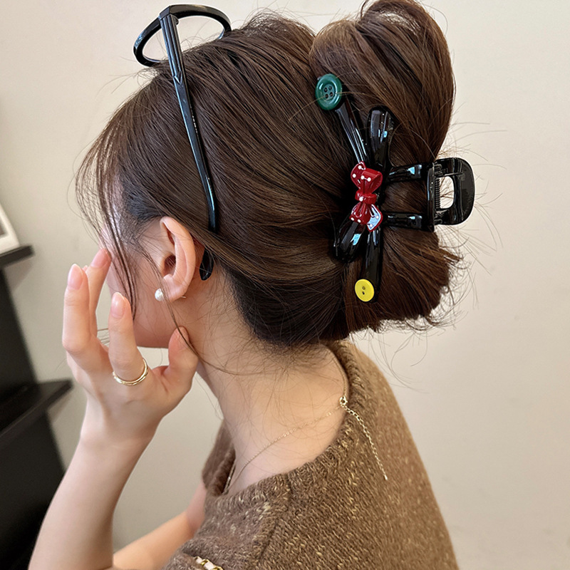 2024 새로운 DIY 버튼 장식 그립 클립 기질 활 큰 머리 그립 고급 머리 상어 클립
