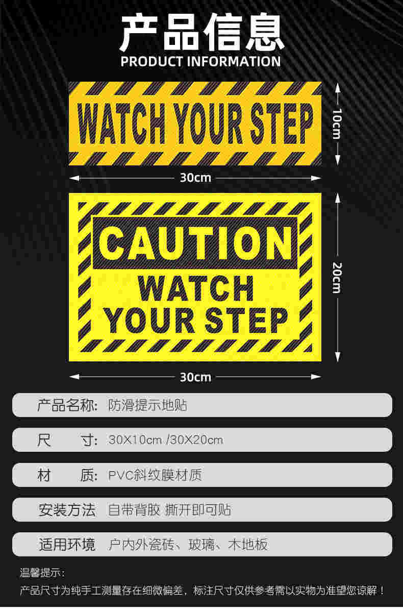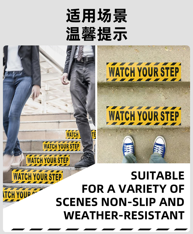 국경 간 재고 PVC 조심스럽게 슬라이딩 프롬프트 스티커 로고 트윌 내마모성 미끄럼 방지 계단 단계 안전 경고 스티커스토어 가기