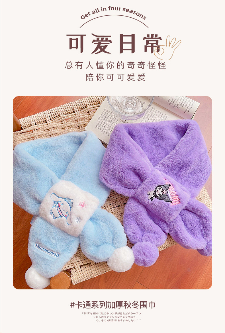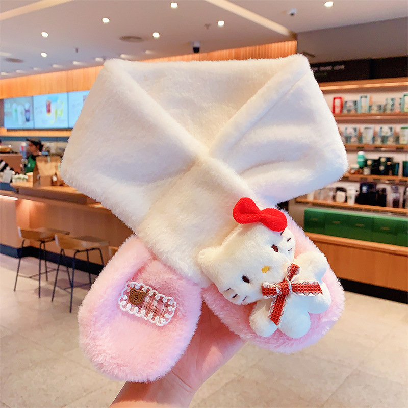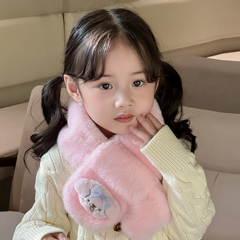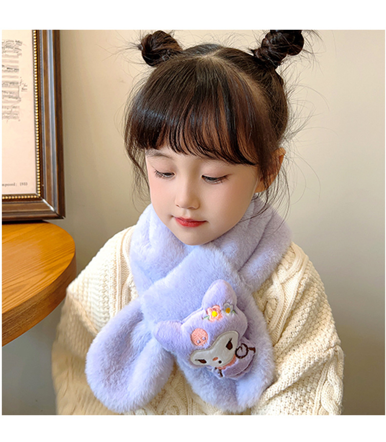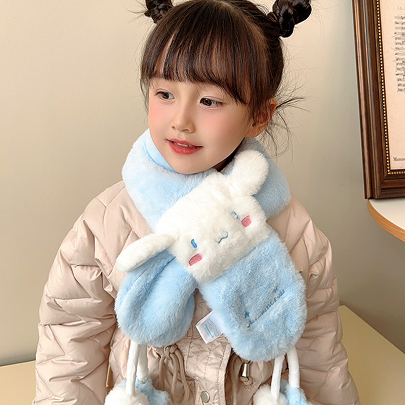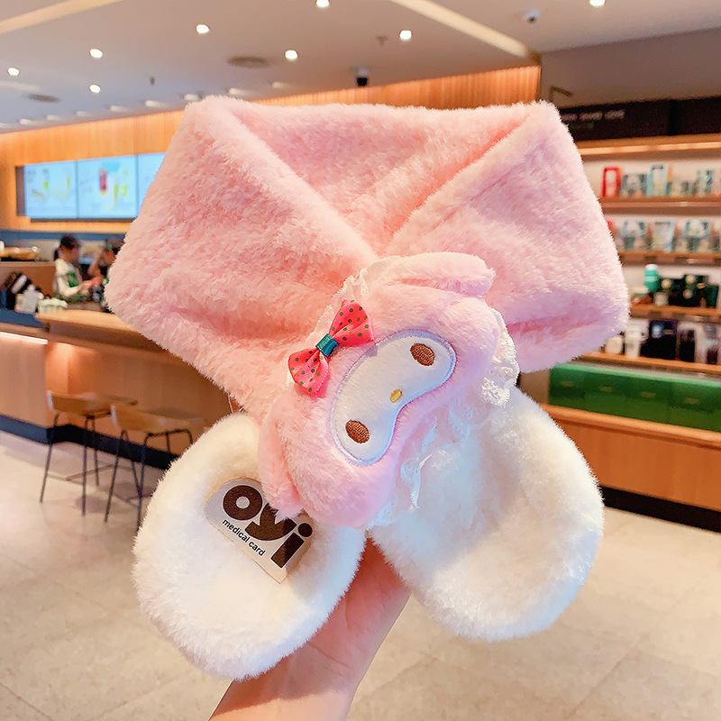 2024 새로운 어린이 스카프 쿨로 미 봉제 토끼 모피 가을 겨울 귀여운 만화 따뜻한 아기 스카프스토어 가기