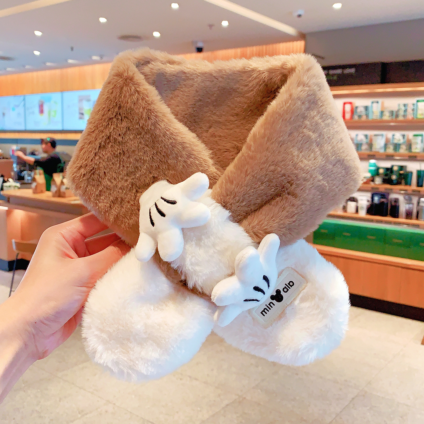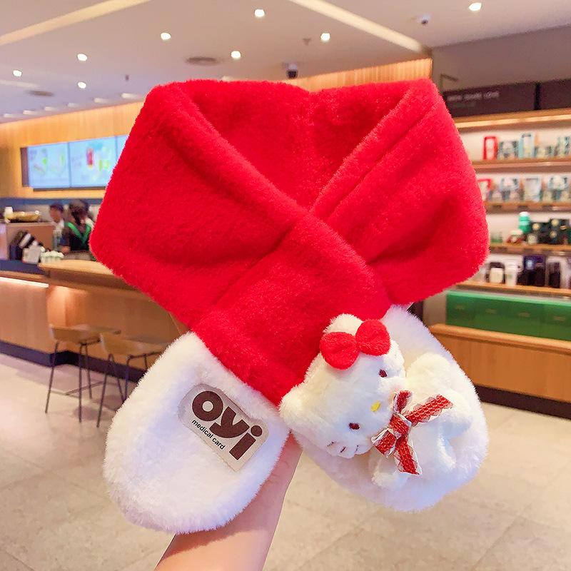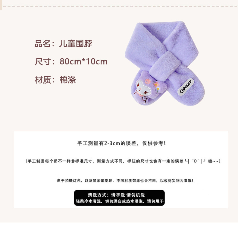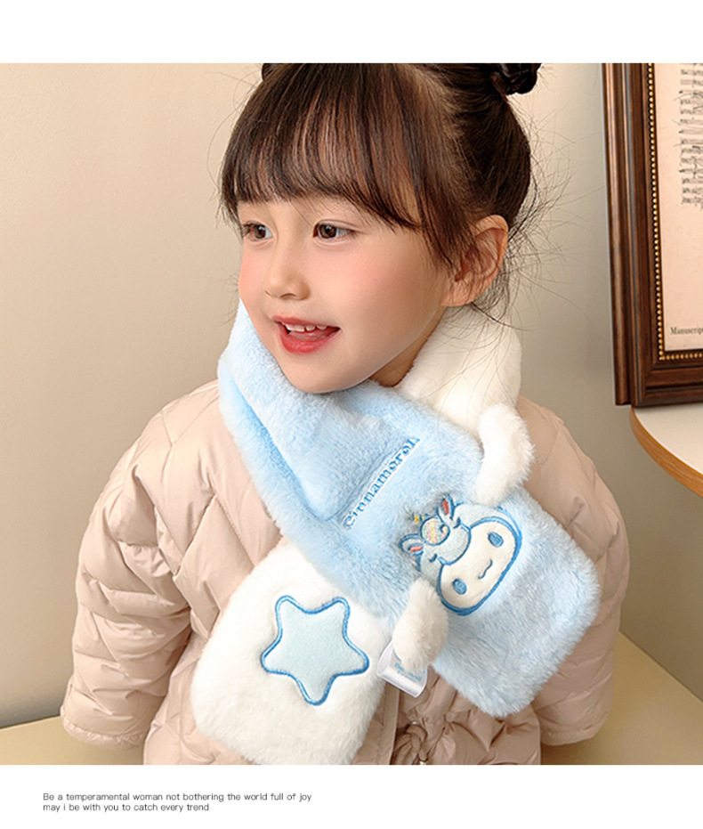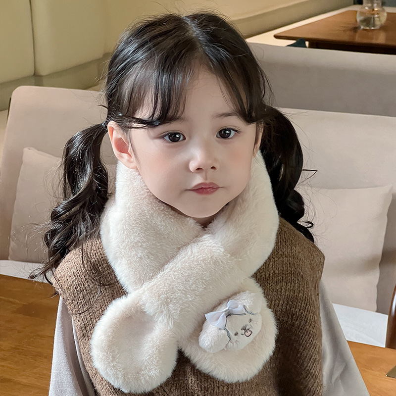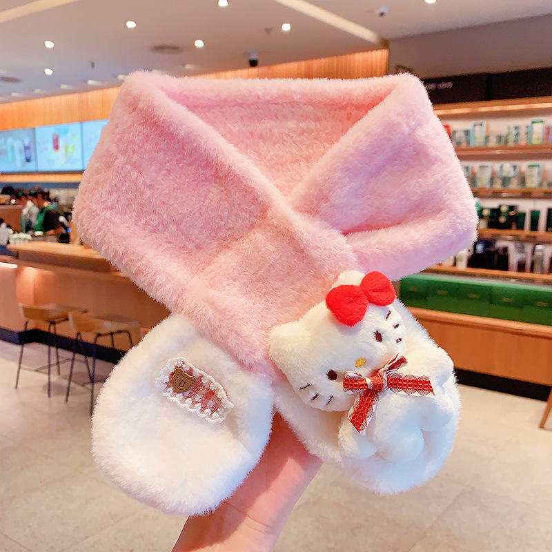 2024 새로운 어린이 스카프 쿨로 미 봉제 토끼 모피 가을 겨울 귀여운 만화 따뜻한 아기 스카프스토어 가기