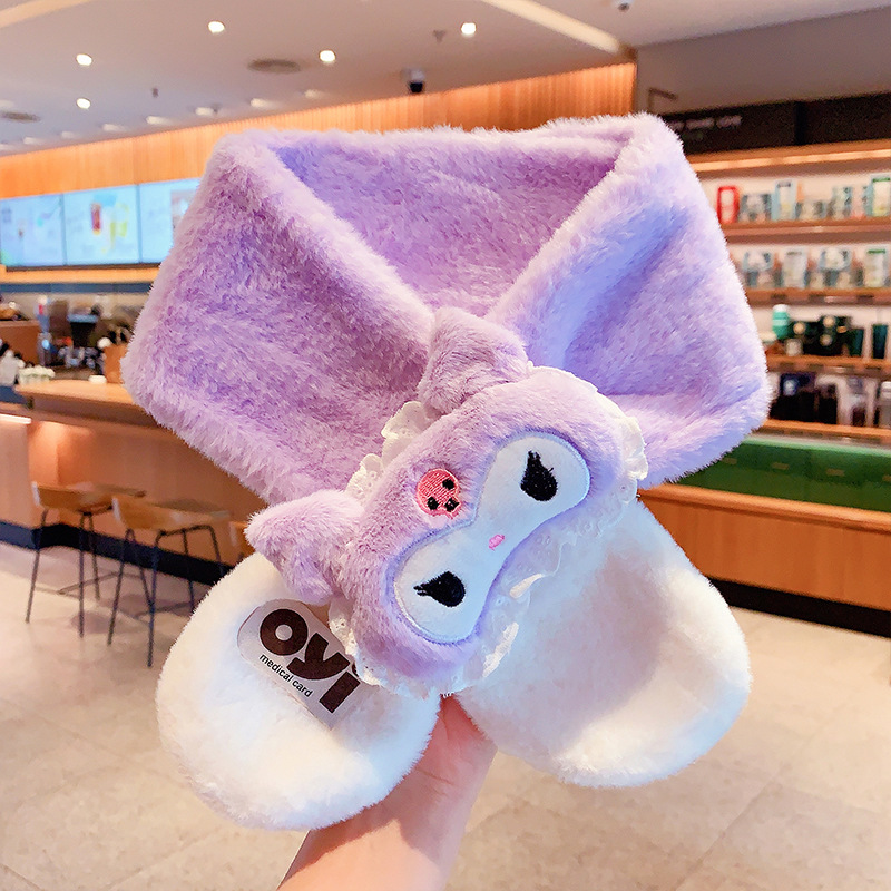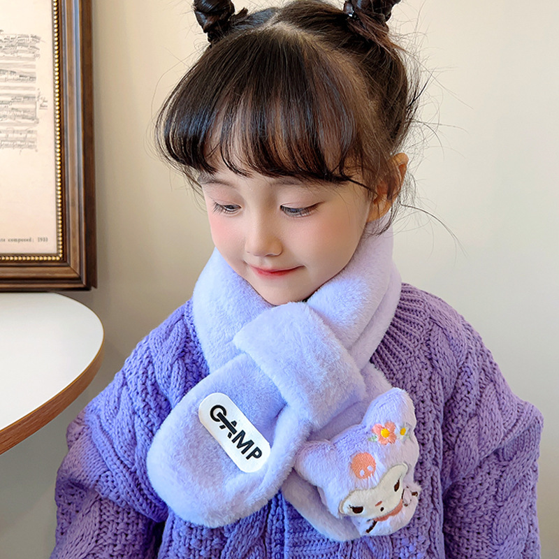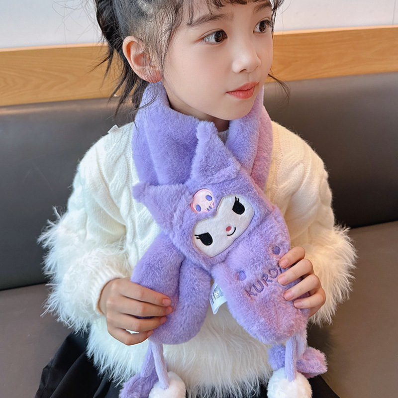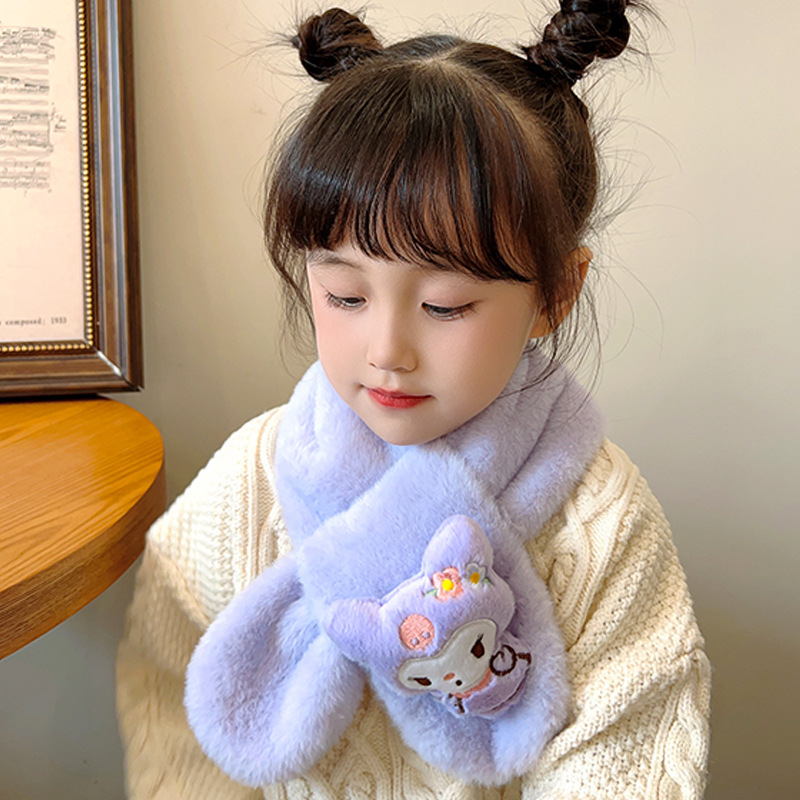 2024 새로운 어린이 스카프 쿨로 미 봉제 토끼 모피 가을 겨울 귀여운 만화 따뜻한 아기 스카프