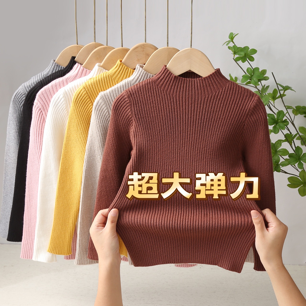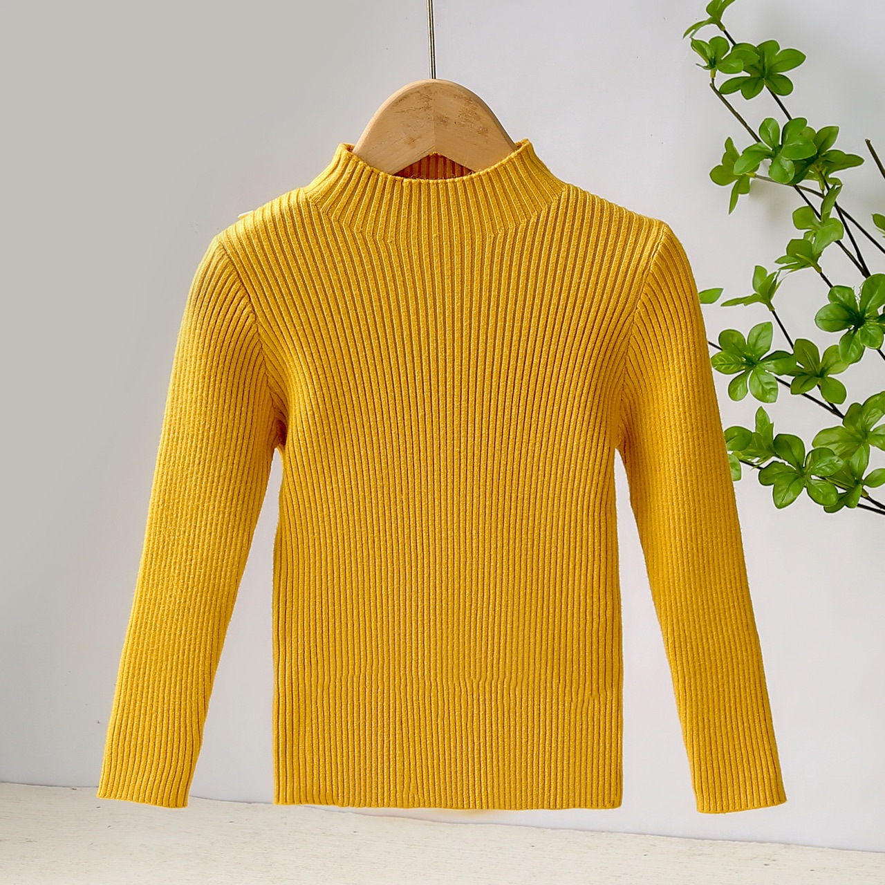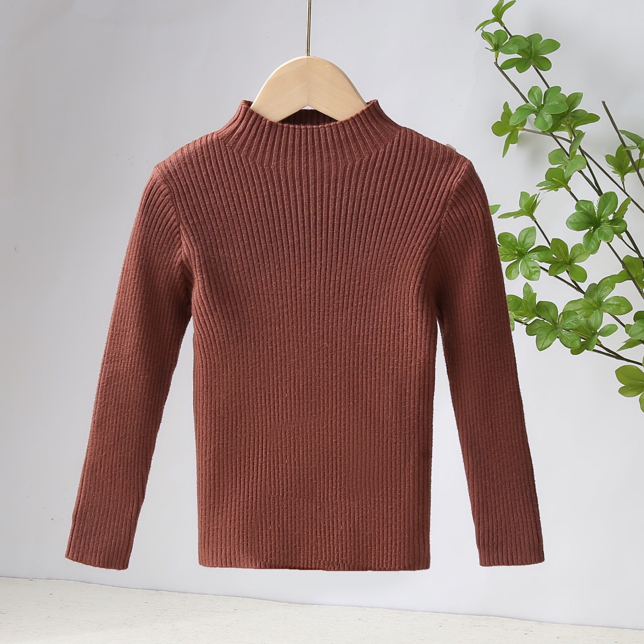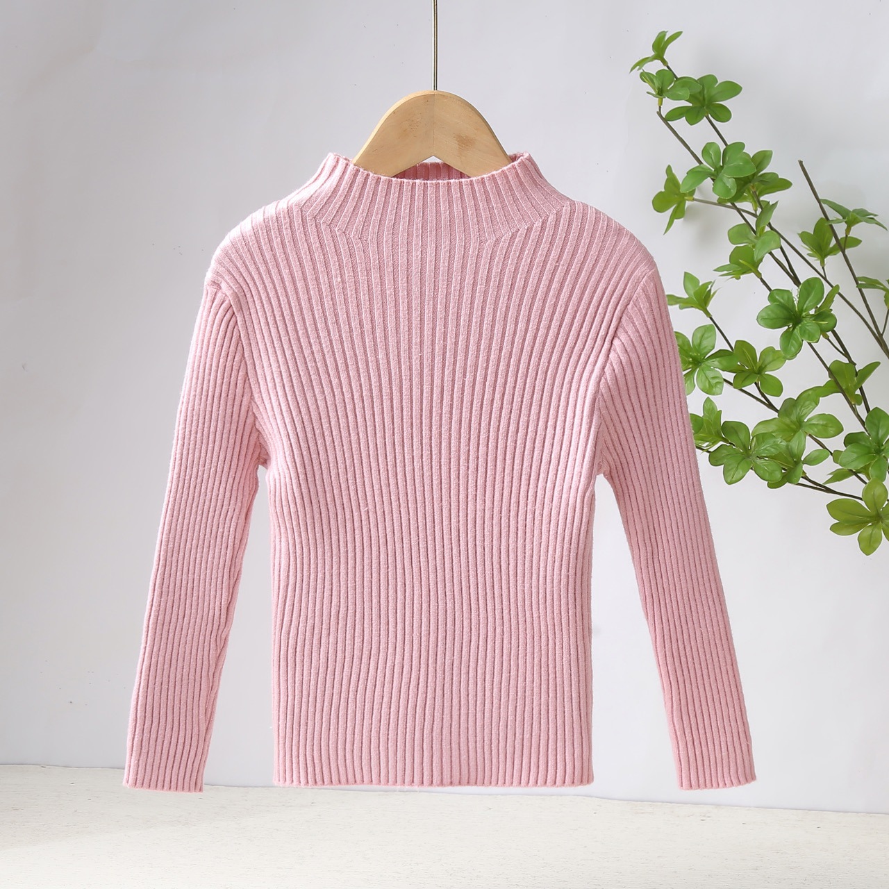 2024 가을과 겨울 새로운 아동복 남녀 니트 베이스 셔츠 서양식 올 매치 한국 어린이 스웨터 하프 하이 칼라