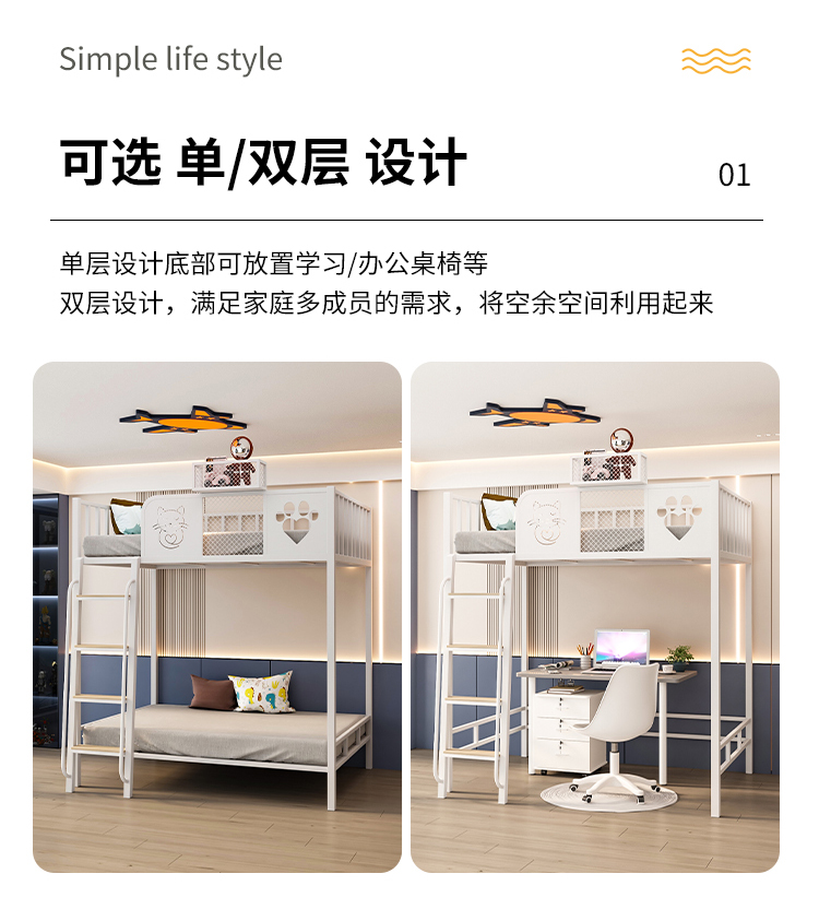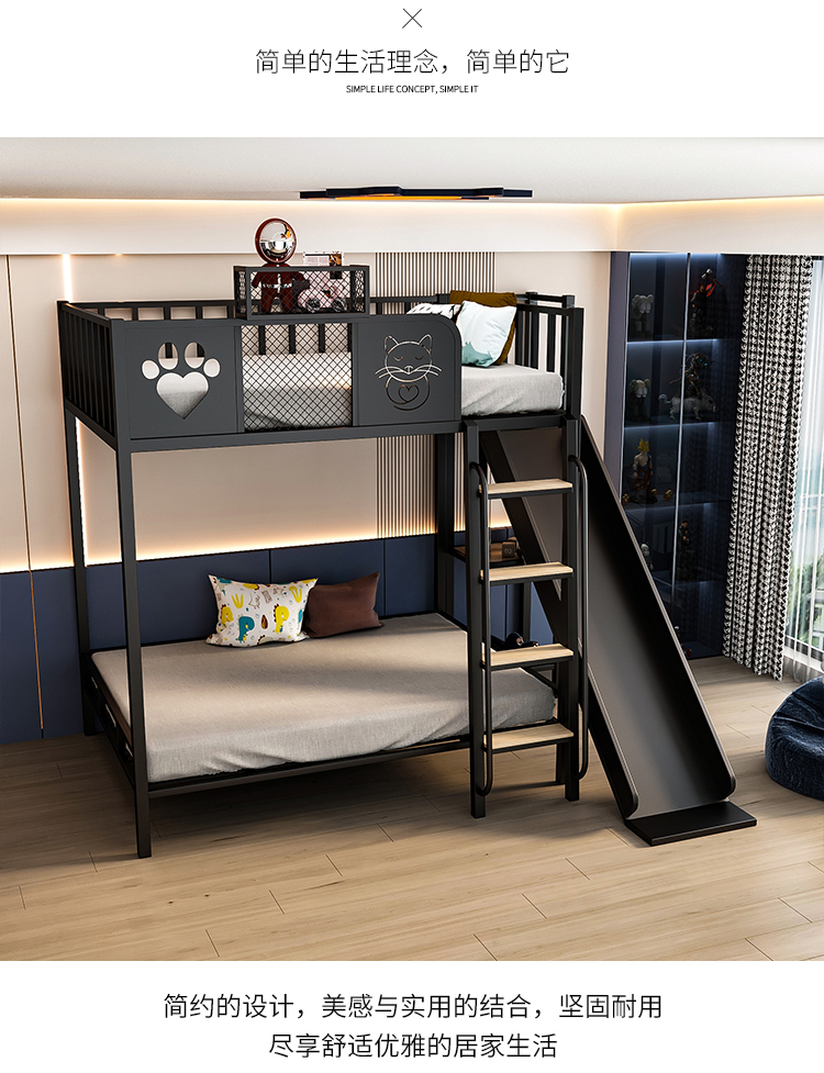 9C Iron Elevated Bed Sheet 성인과 어린이를위한 Upper Bunk Bed Loft 공간 절약 상하 이층 아이언 침대 슬라이드 침대스토어 가기