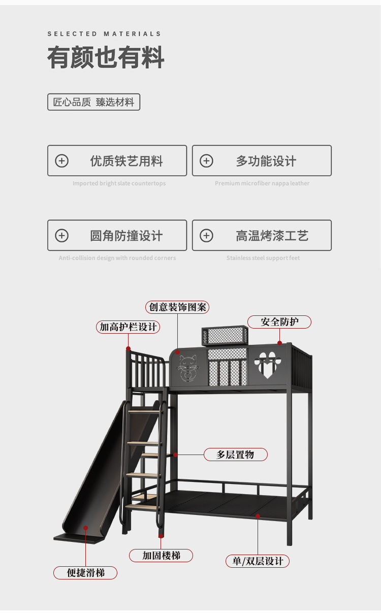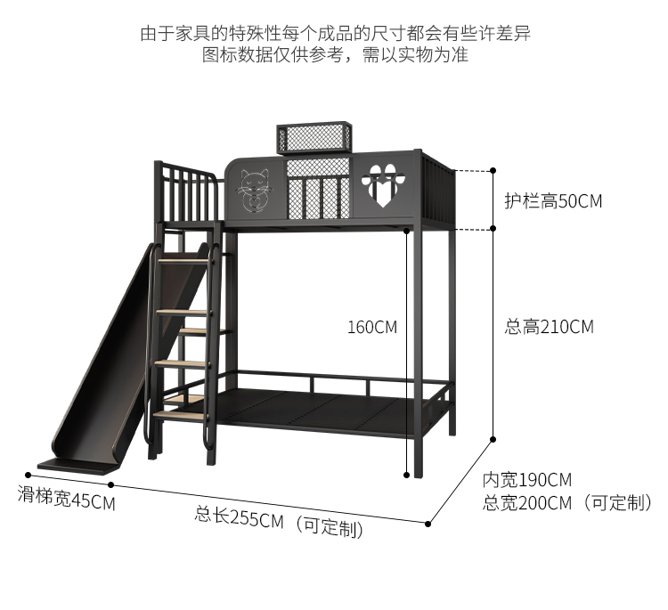 9C Iron Elevated Bed Sheet 성인과 어린이를위한 Upper Bunk Bed Loft 공간 절약 상하 이층 아이언 침대 슬라이드 침대