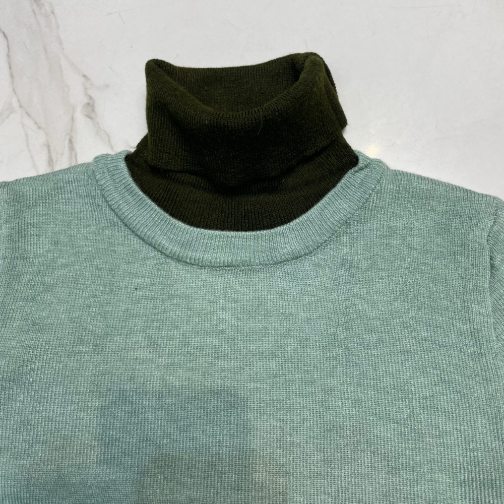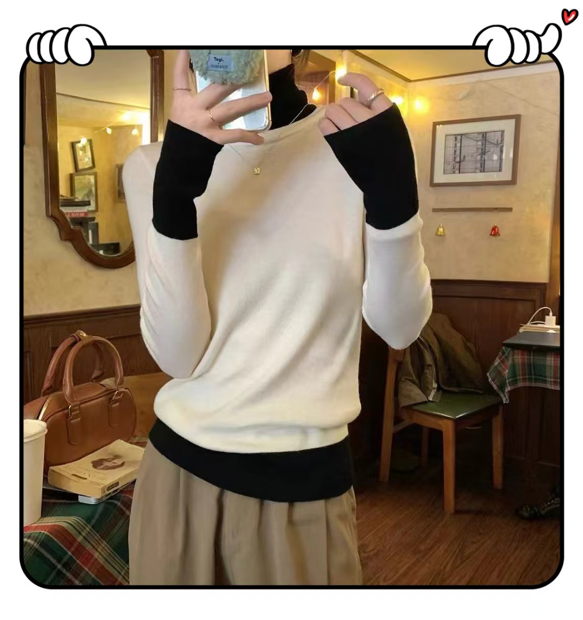 시니어 니치 컬러 대비 가짜 투피스 긴팔 더미 칼라 니트웨어 여성용 가을과 겨울 슬림 핏 얇은 우아한베이스 탑