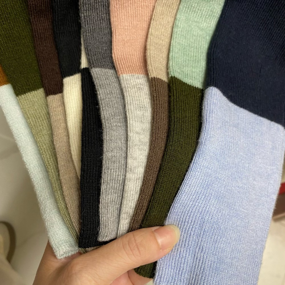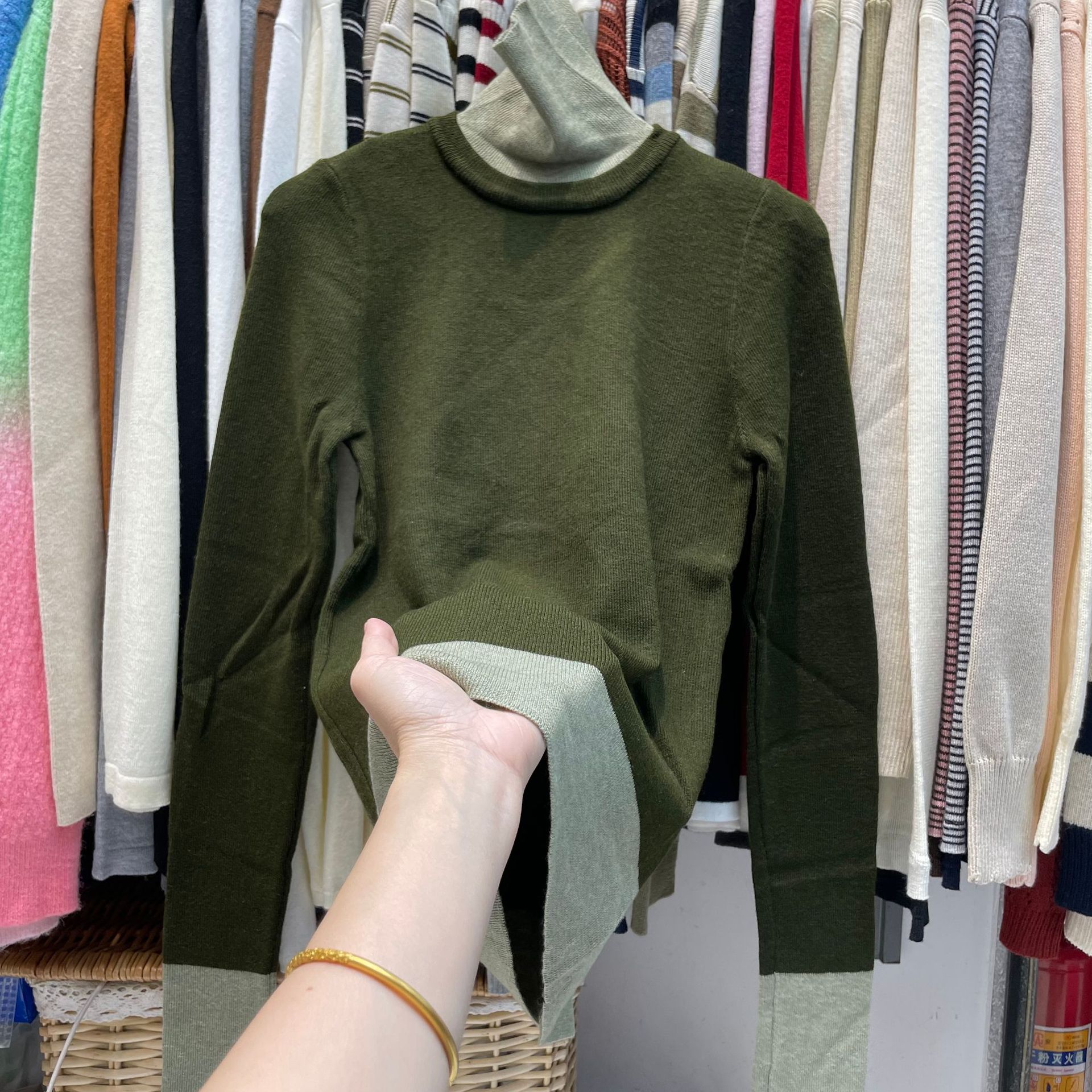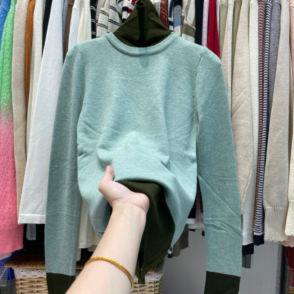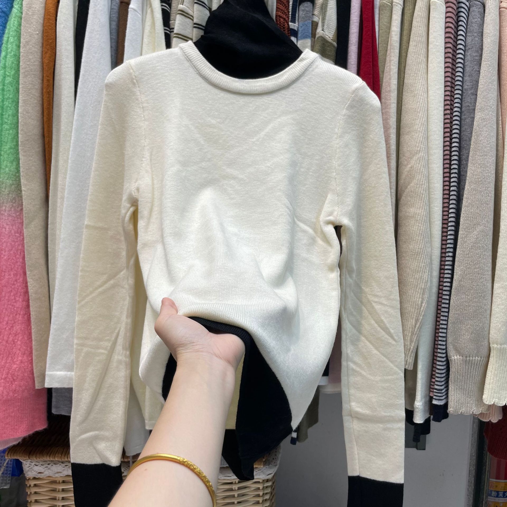 시니어 니치 컬러 대비 가짜 투피스 긴팔 더미 칼라 니트웨어 여성용 가을과 겨울 슬림 핏 얇은 우아한베이스 탑스토어 가기