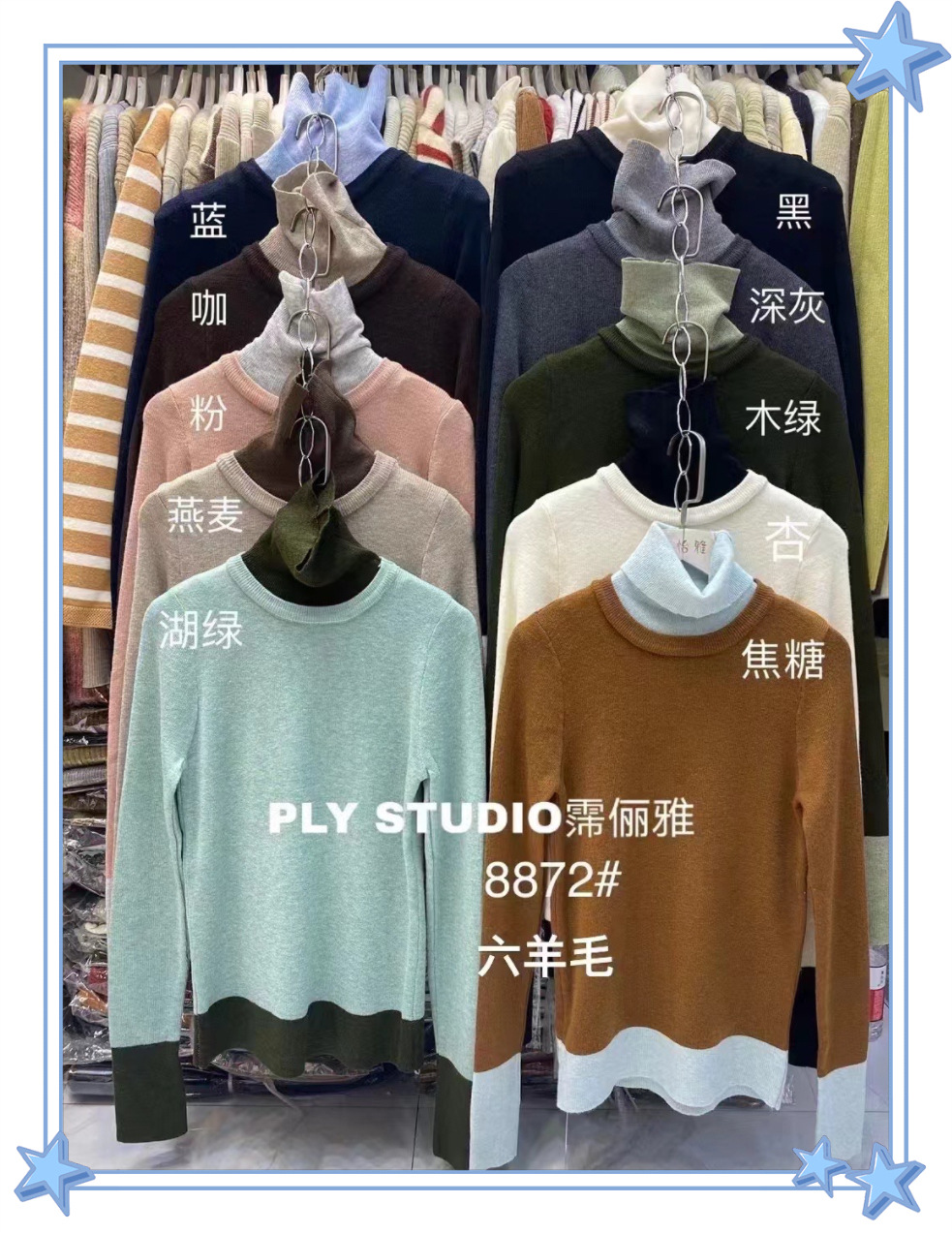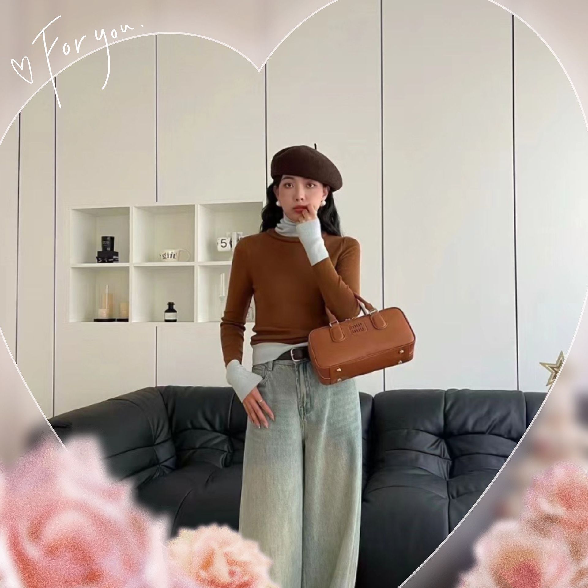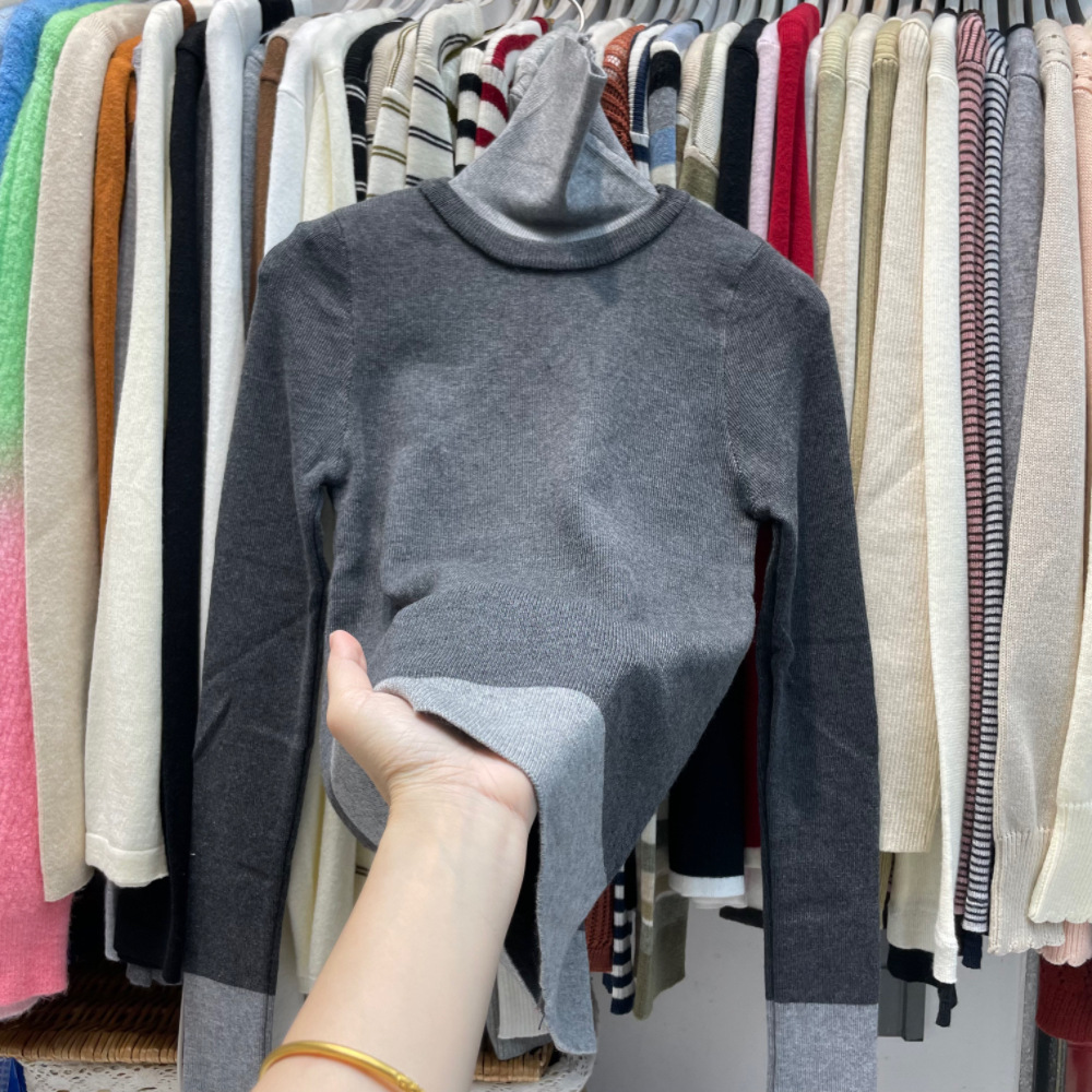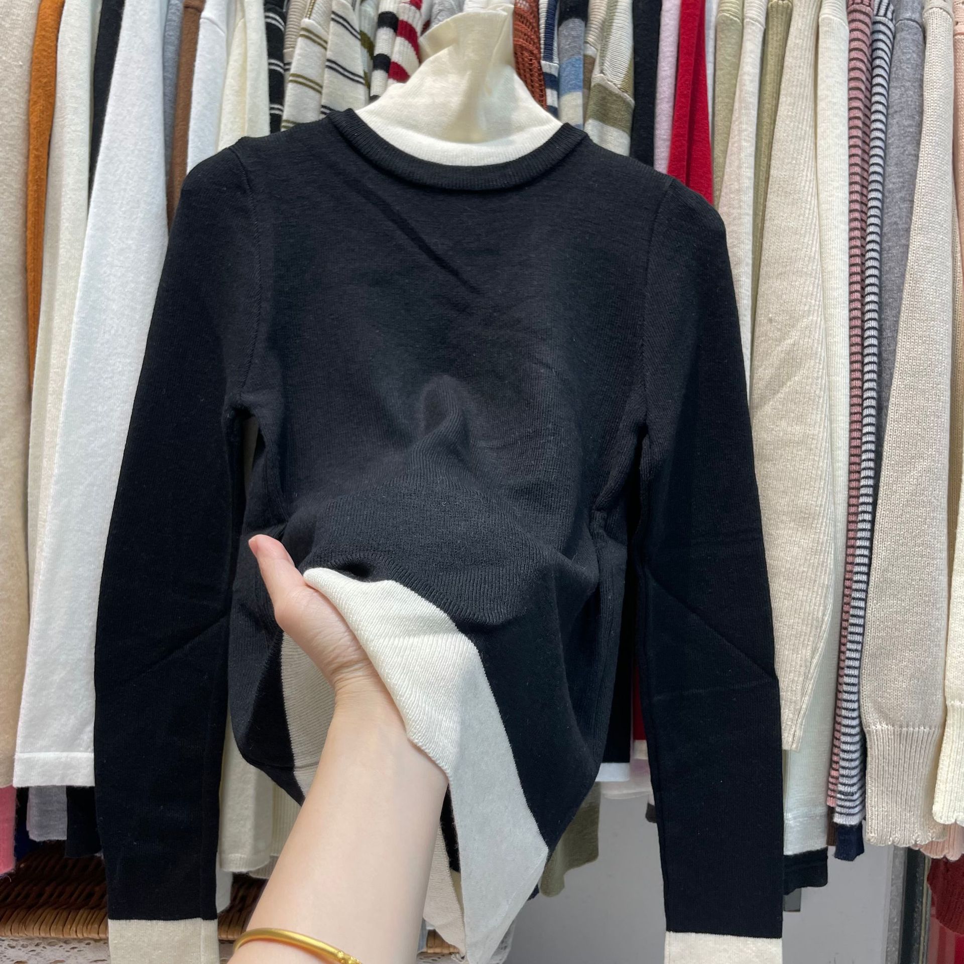 시니어 니치 컬러 대비 가짜 투피스 긴팔 더미 칼라 니트웨어 여성용 가을과 겨울 슬림 핏 얇은 우아한베이스 탑스토어 가기