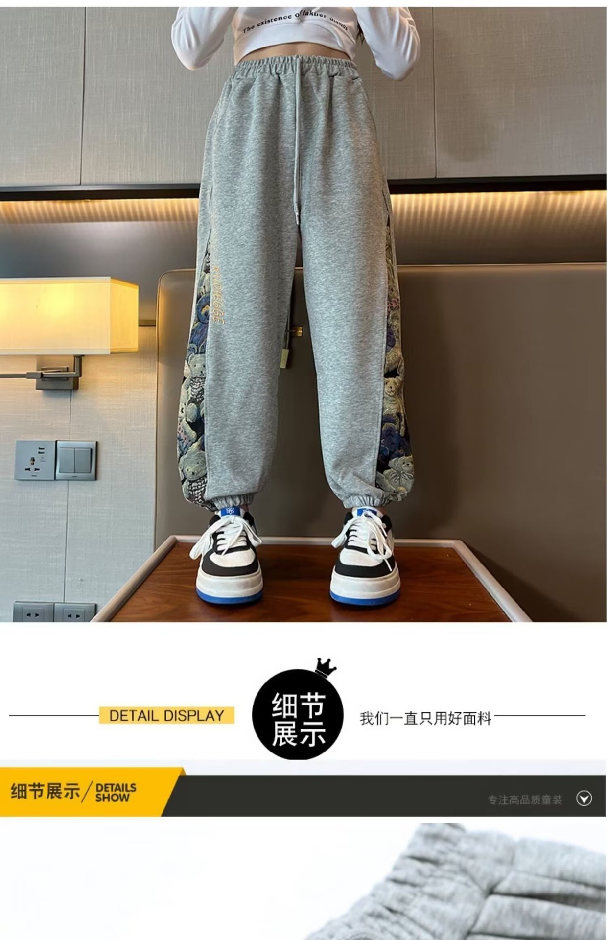어린이 바지 가을과 겨울 2024 새로운 스타일 중대형 어린이 스포츠 바지 가을 소녀 캐주얼 서양식 롱 웨이 바지 아동복스토어 가기