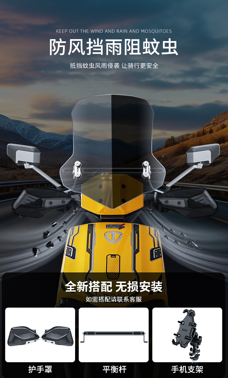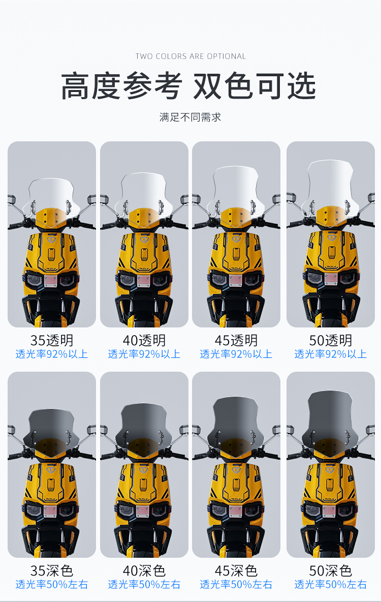 • 35cm 투명 앞유리 + 스테인레스 스틸 브래킷
