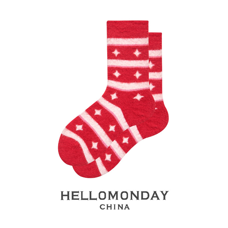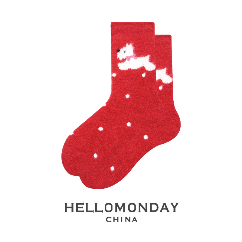 85415 Zhuji 양말 여성 가을과 겨울 붉은 줄무늬 밍크 벨벳 스타킹 귀여운 만화 소녀 새해 따뜻한 양말스토어 가기