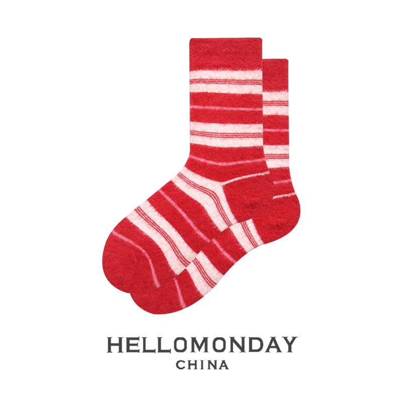 85415 Zhuji 양말 여성 가을과 겨울 붉은 줄무늬 밍크 벨벳 스타킹 귀여운 만화 소녀 새해 따뜻한 양말