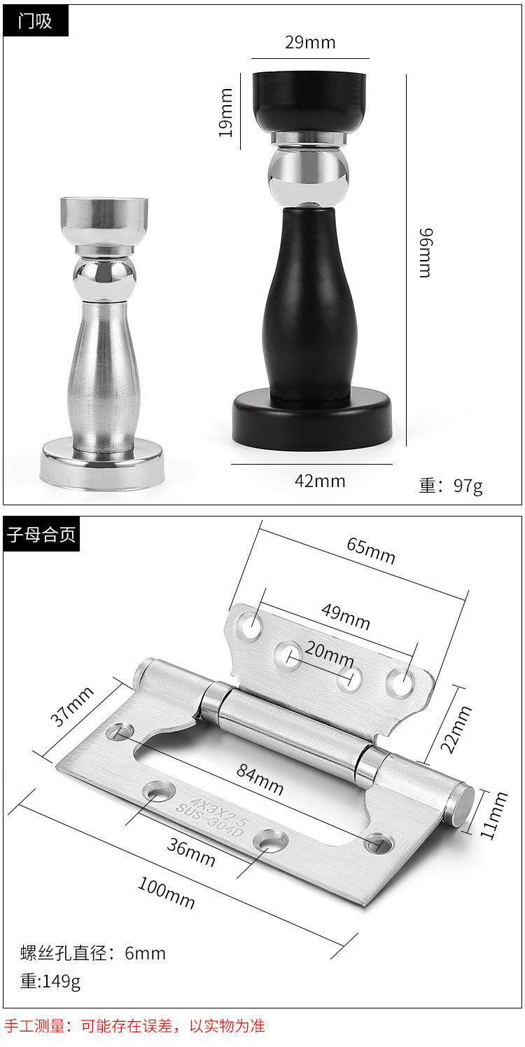304 스테인레스 스틸 세트 힌지 도어 흡입 도어 4 인치 음소거 어린이-어머니 힌지 물집 포장 3 + 1 힌지 접기스토어 가기