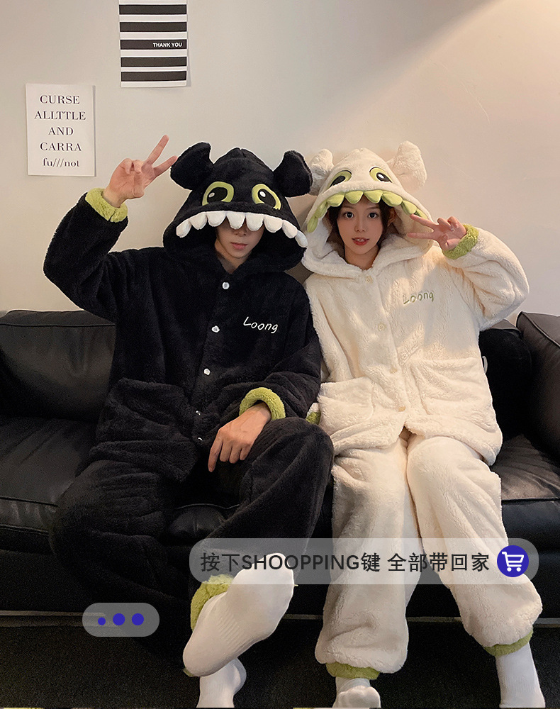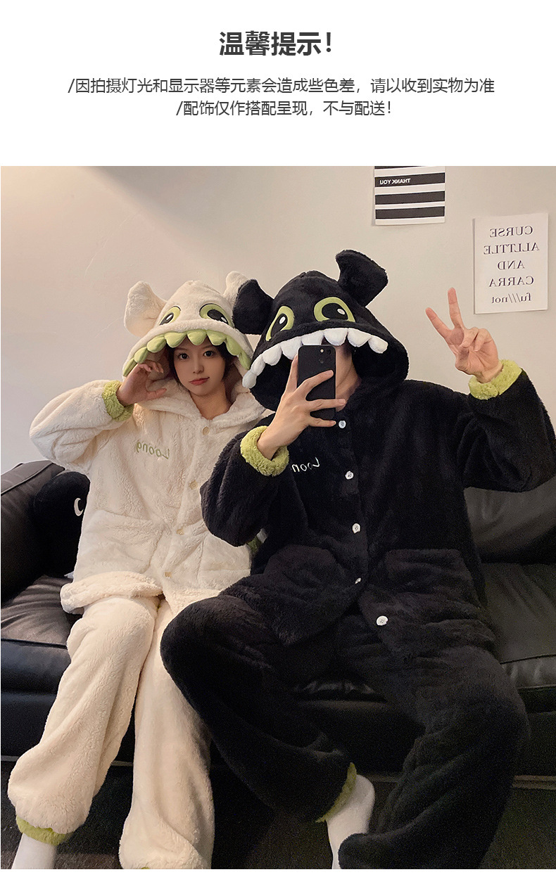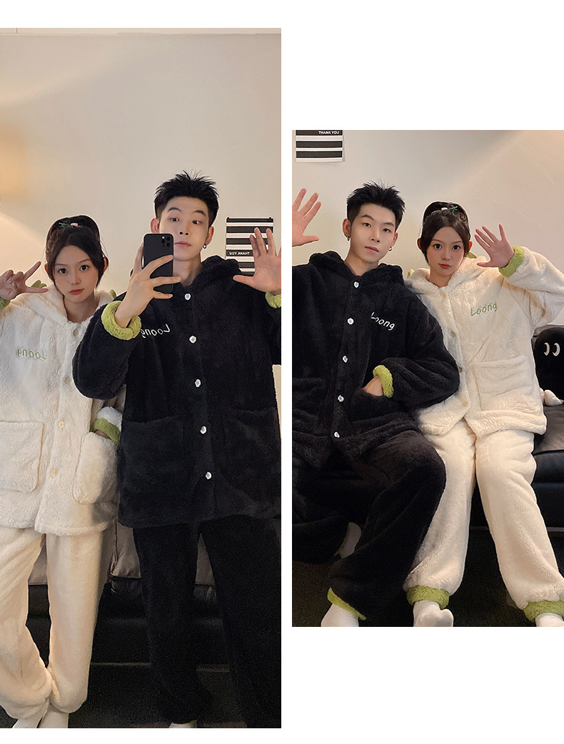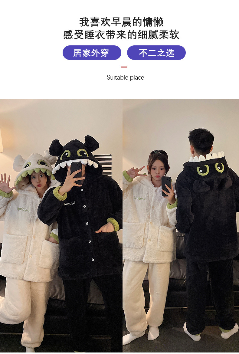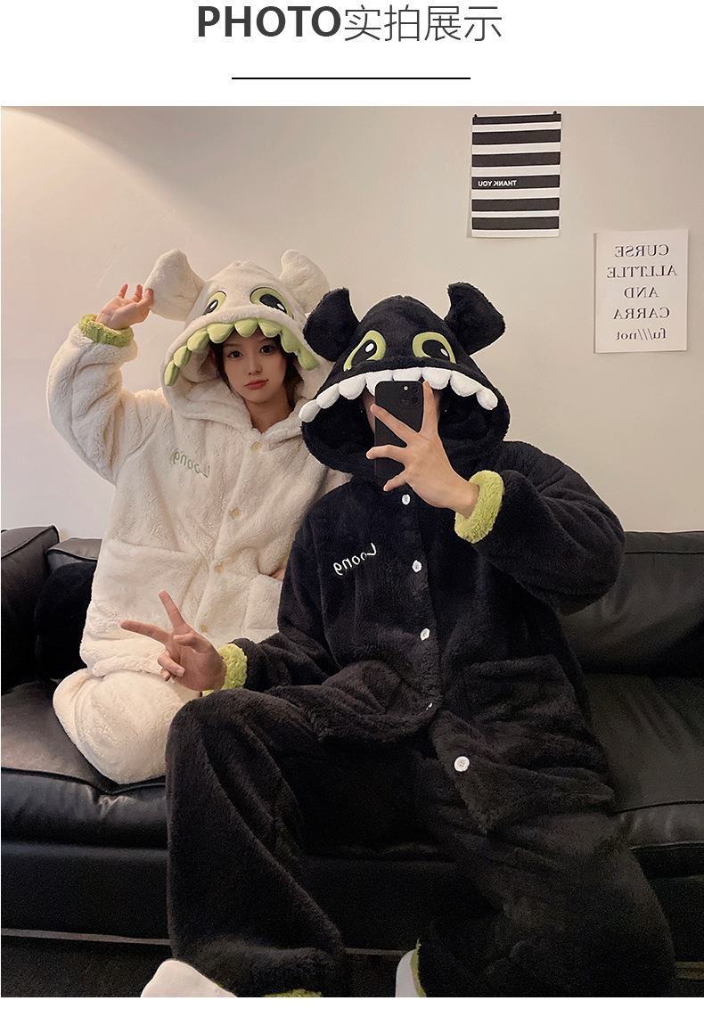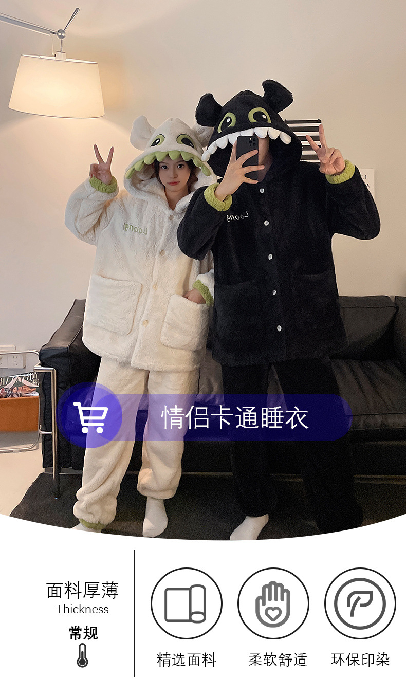 플란넬 커플 나이트가운 여성의 겨울 산호 양털 파자마 긴 소매 겨울 남자 기모 두꺼운 홈 의류 세트스토어 가기