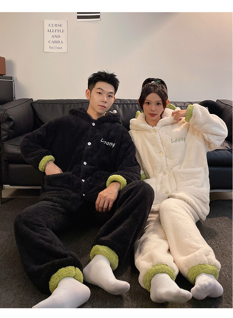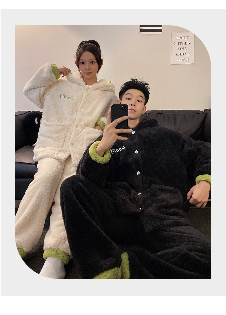 플란넬 커플 나이트가운 여성의 겨울 산호 양털 파자마 긴 소매 겨울 남자 기모 두꺼운 홈 의류 세트