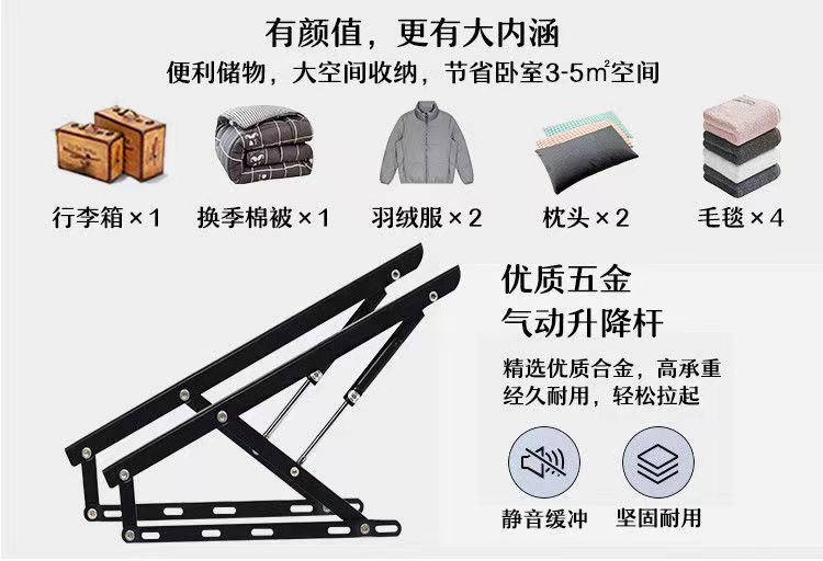 9C 단단한 나무 높은 상자 침대 판 유형 공기 압력 소파 침대 침대 1 m 통합 가구 단일 다다미 침실 저장 침대 세트
