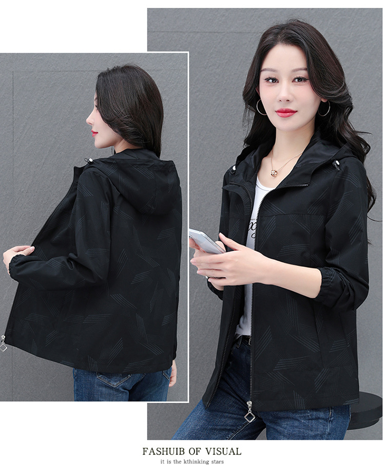 플러스 사이즈 재킷 여성의 인쇄 후드 캐주얼 스포츠 카디건 재킷 2024 새로운 여성복 슬림 룩 나이 감소 재킷