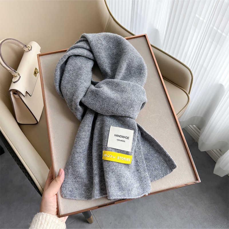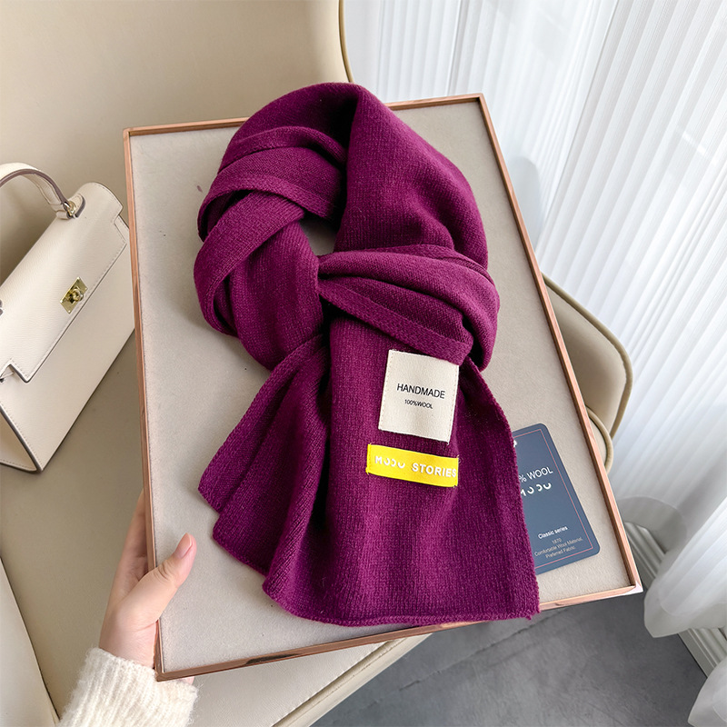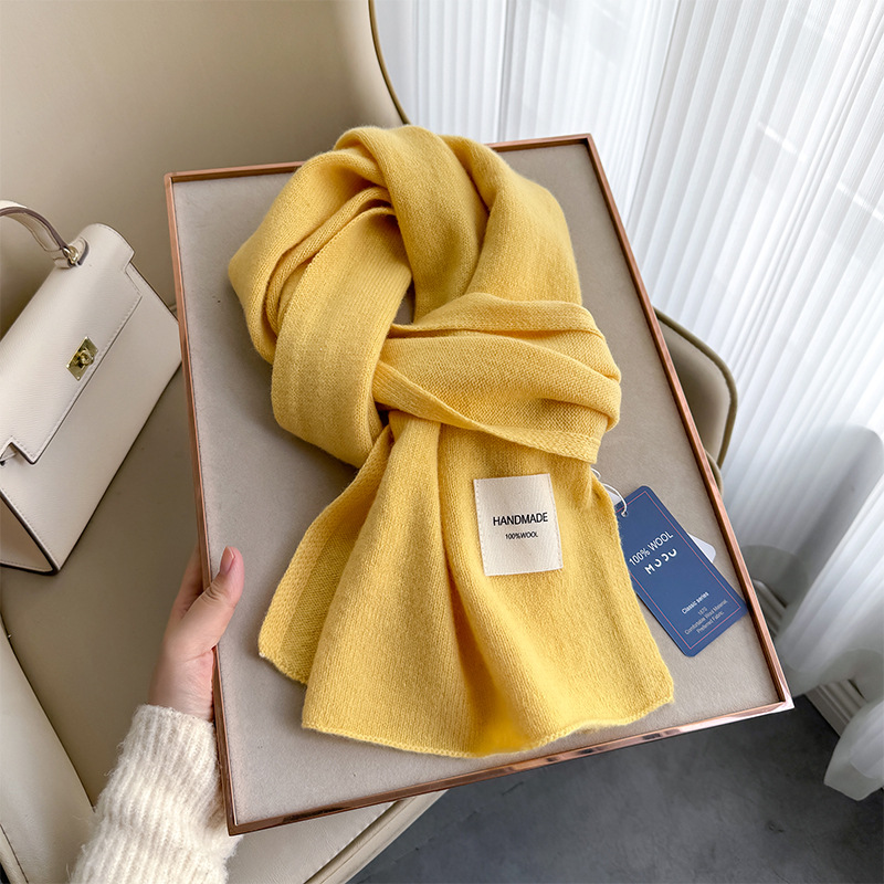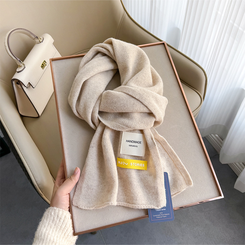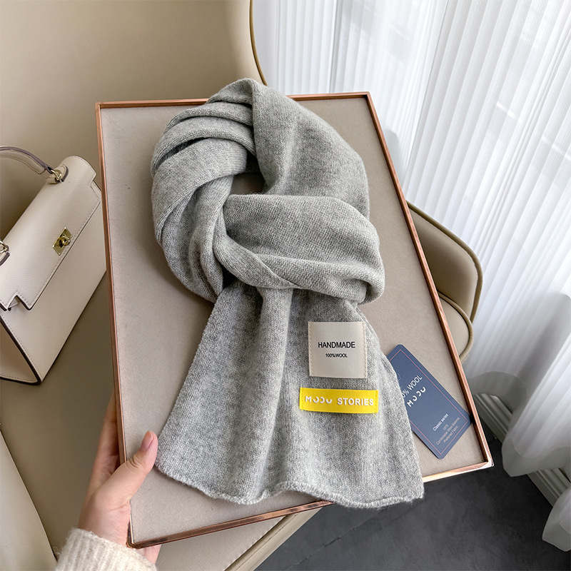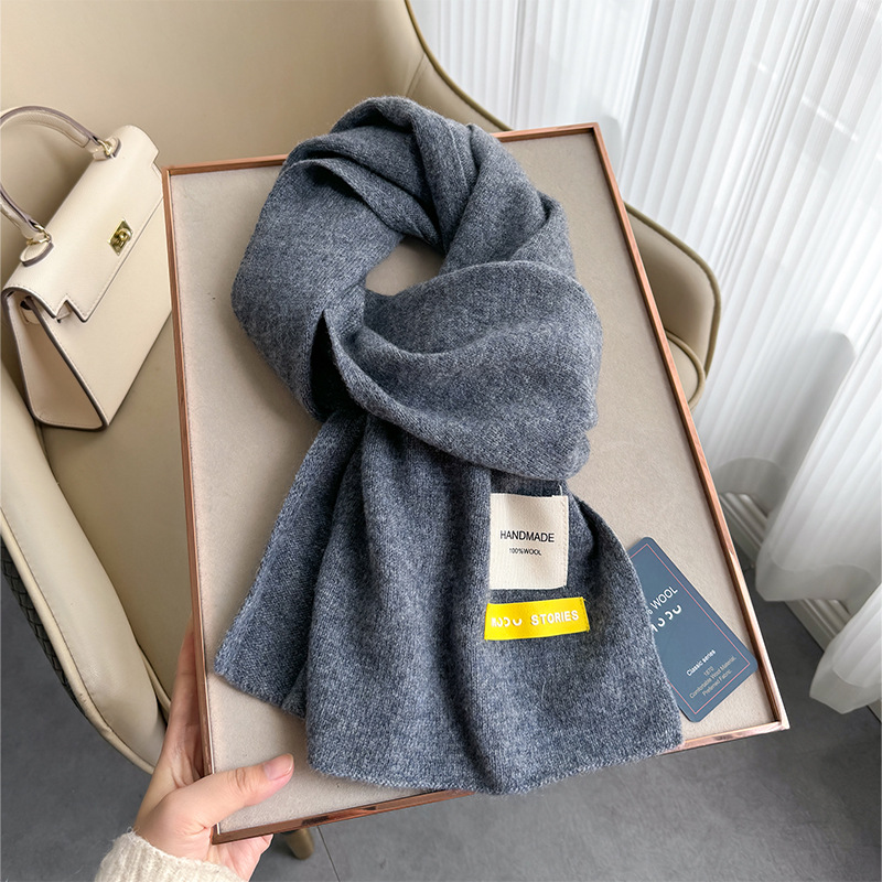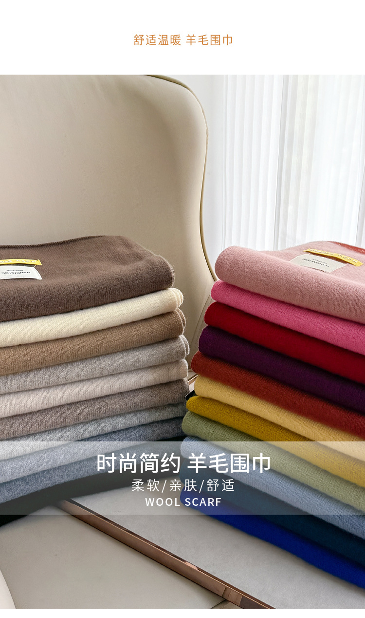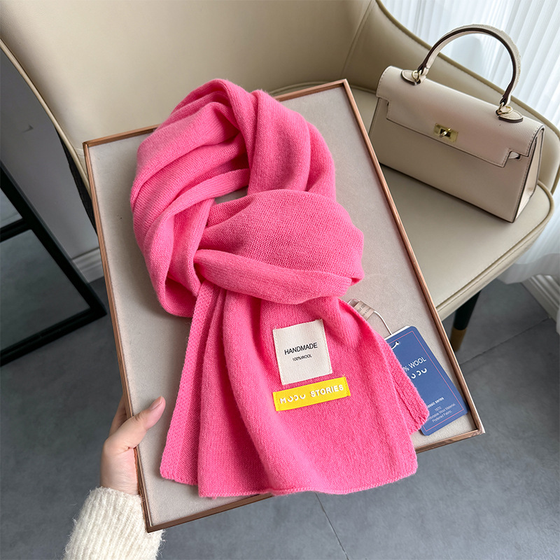 100 퓨어 울 스카프 올 매치 솔리드 컬러 여성 한국 스타일 따뜻한 니트 스카프 겨울 커플의 간단한 울 스카프스토어 가기
