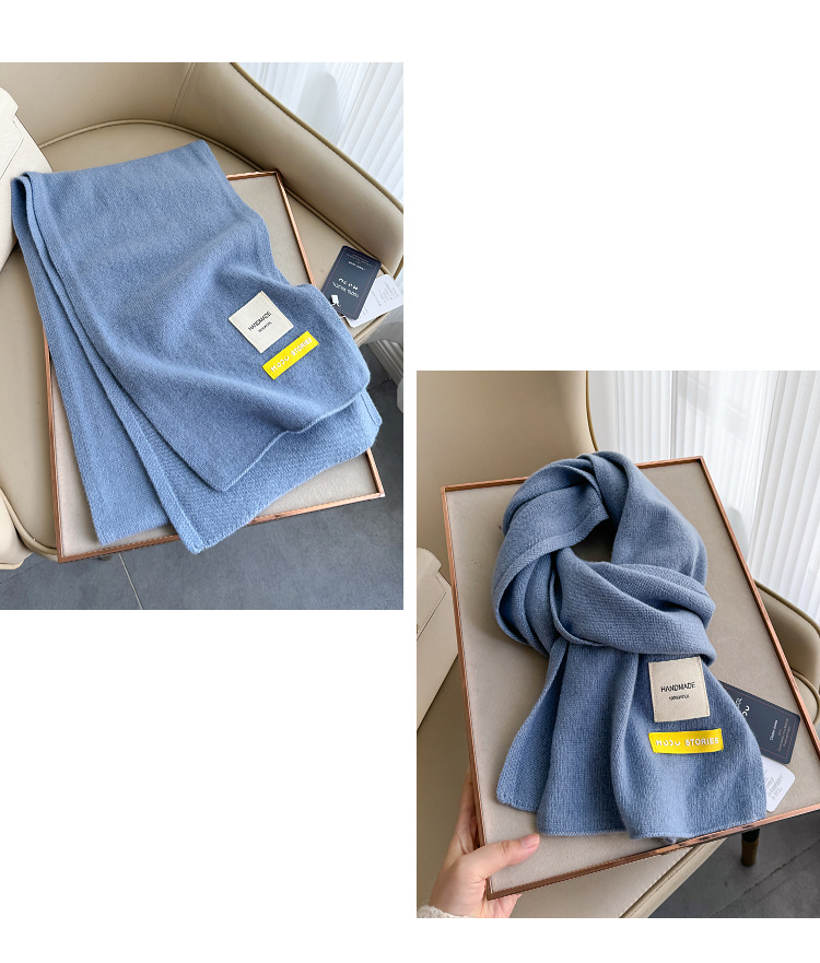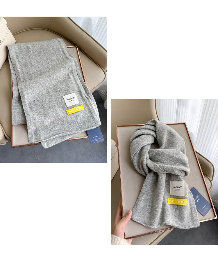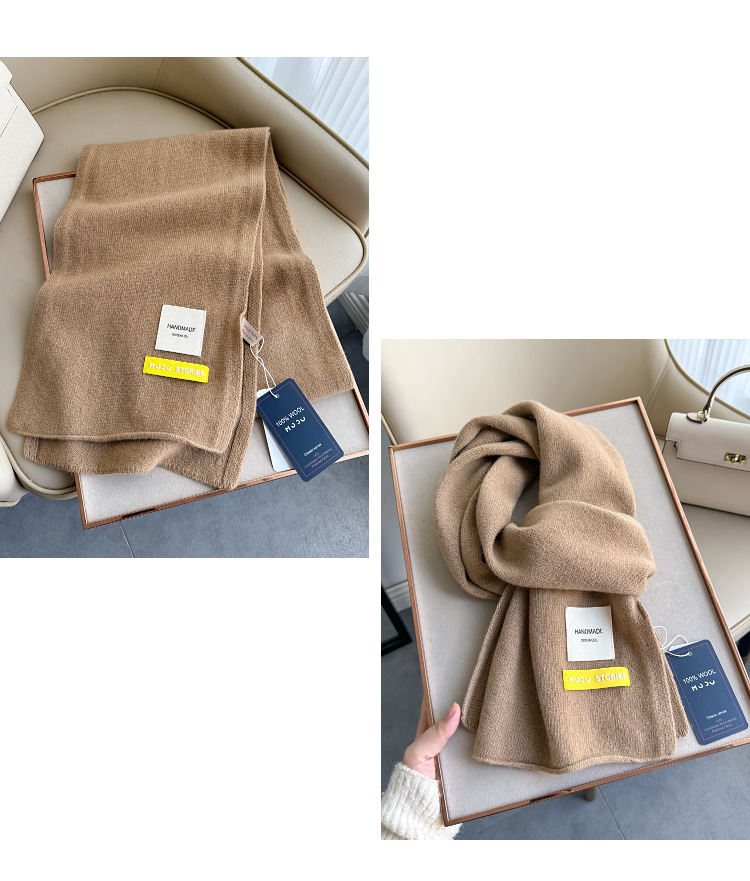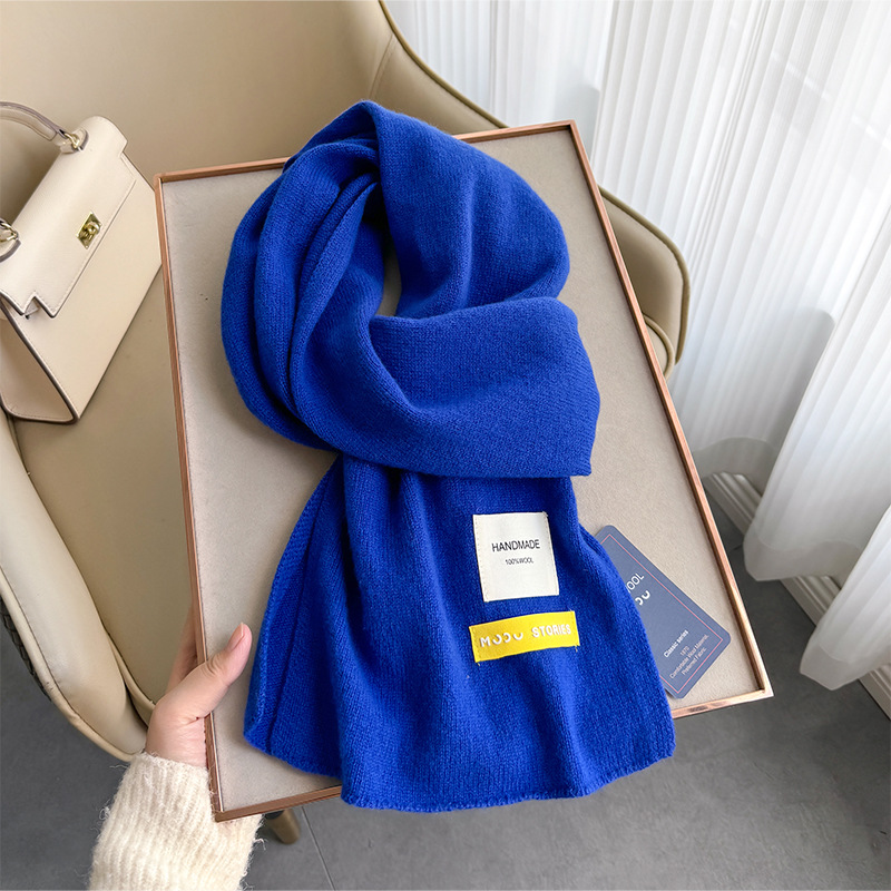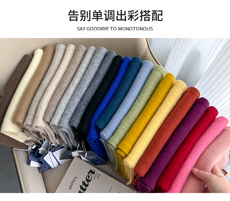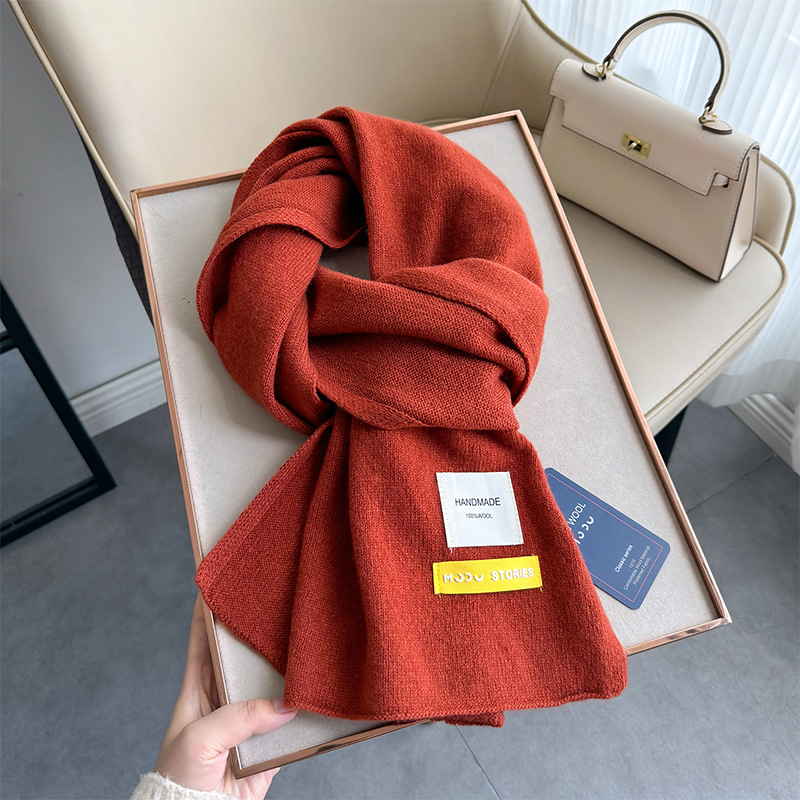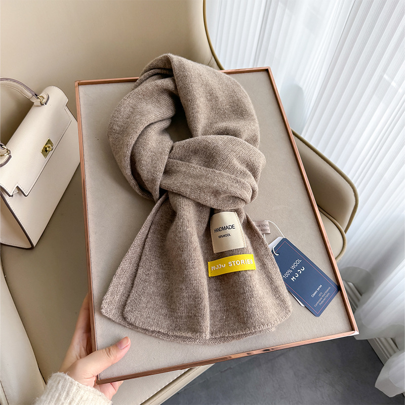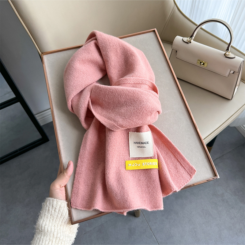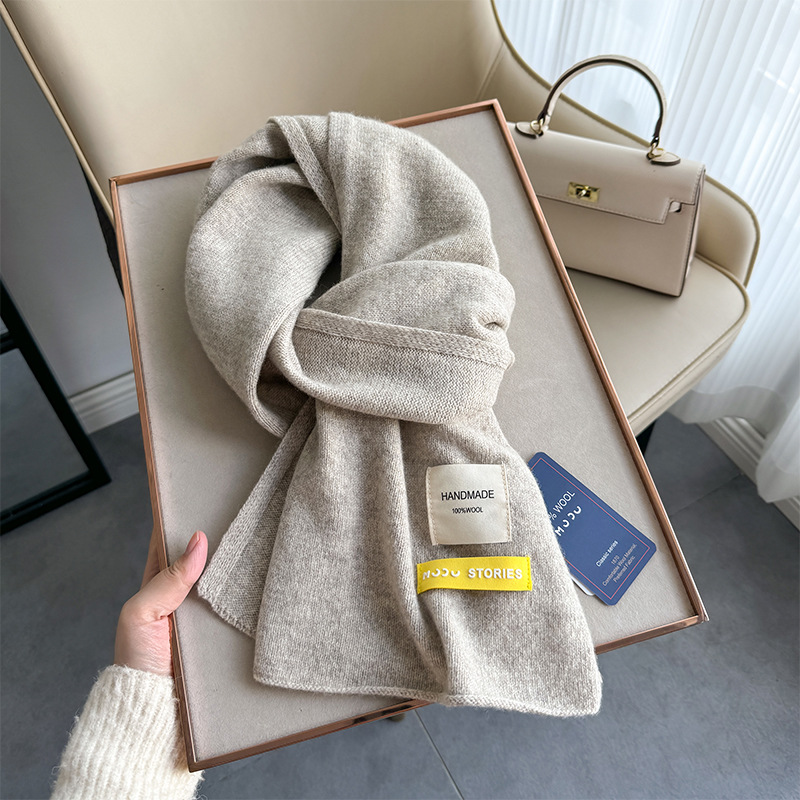100 퓨어 울 스카프 올 매치 솔리드 컬러 여성 한국 스타일 따뜻한 니트 스카프 겨울 커플의 간단한 울 스카프스토어 가기