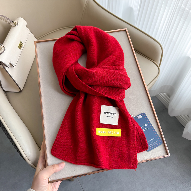 100 퓨어 울 스카프 올 매치 솔리드 컬러 여성 한국 스타일 따뜻한 니트 스카프 겨울 커플의 간단한 울 스카프