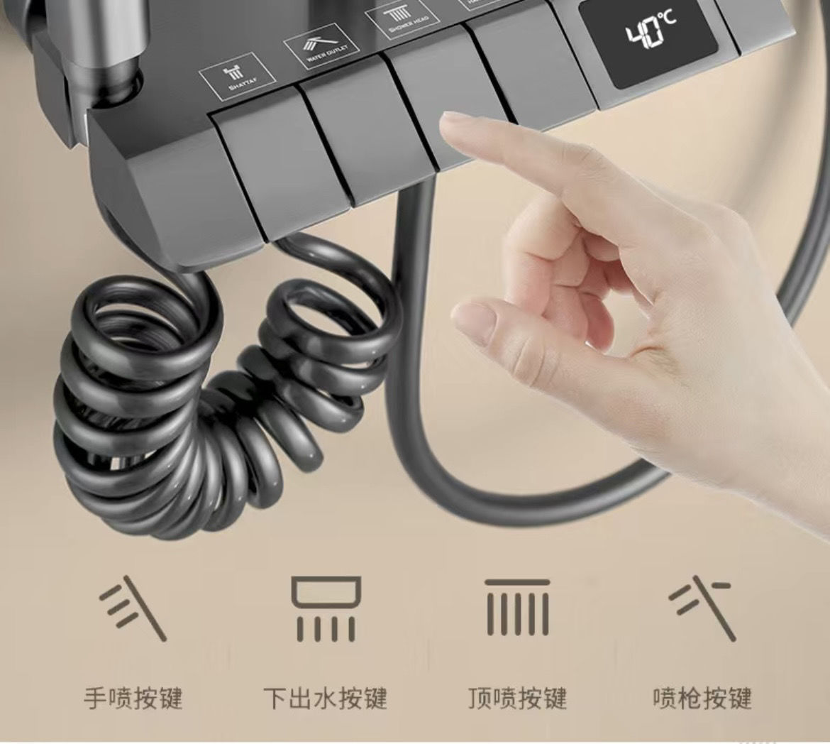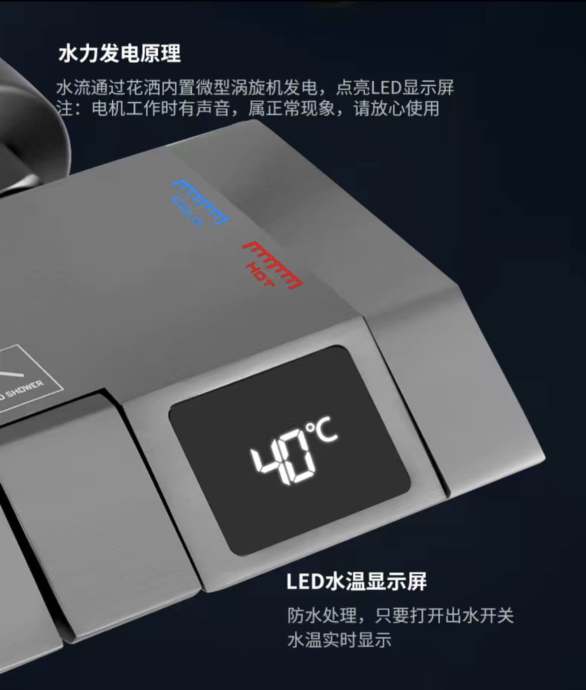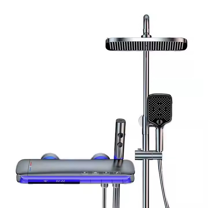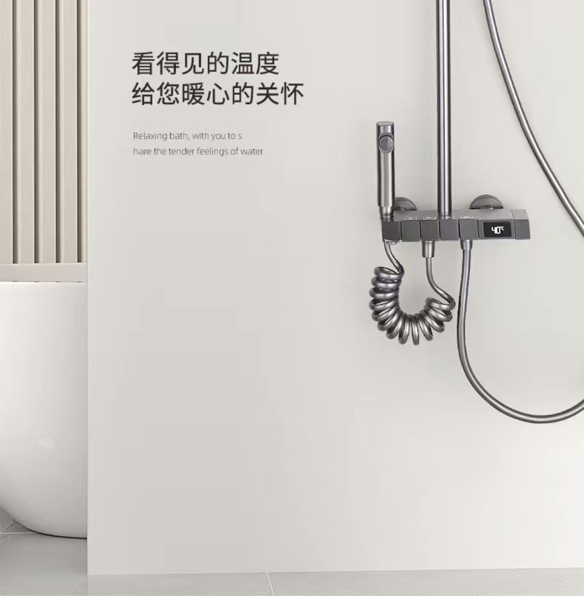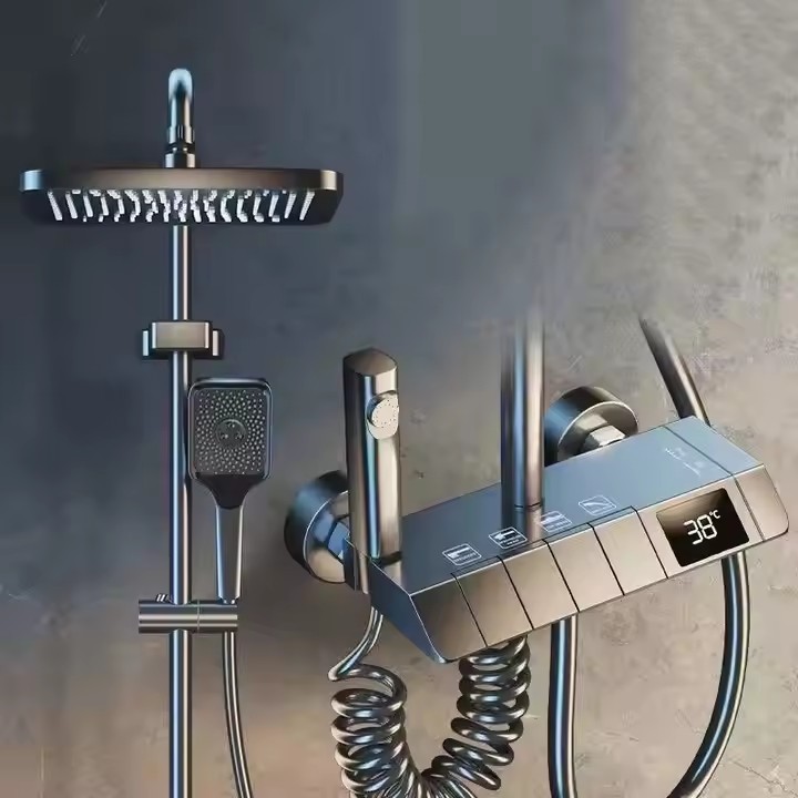 크로스보더 가압식 숨겨진 욕실 온도 조절 디지털 디스플레이 샤워 헤드 세트, 상단 스프레이 포함스토어 가기
