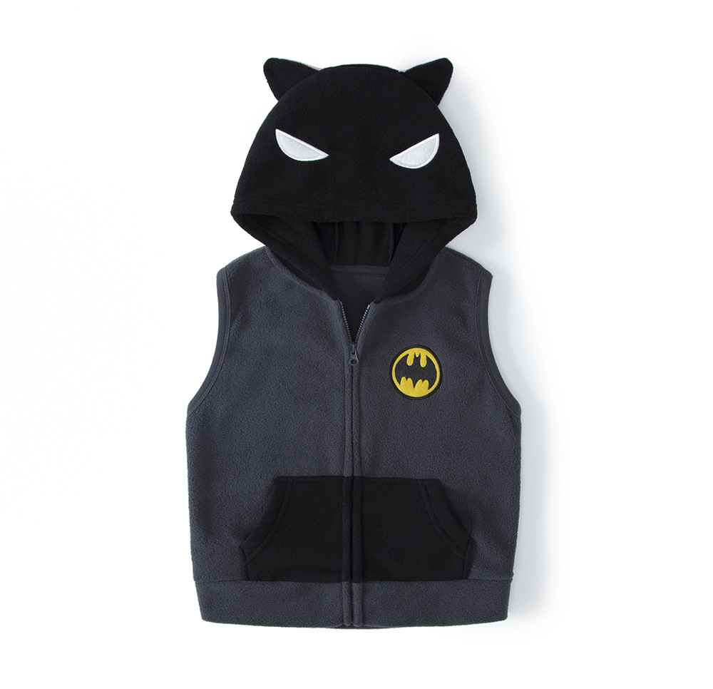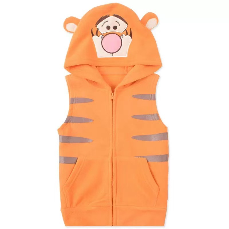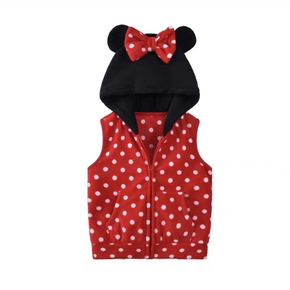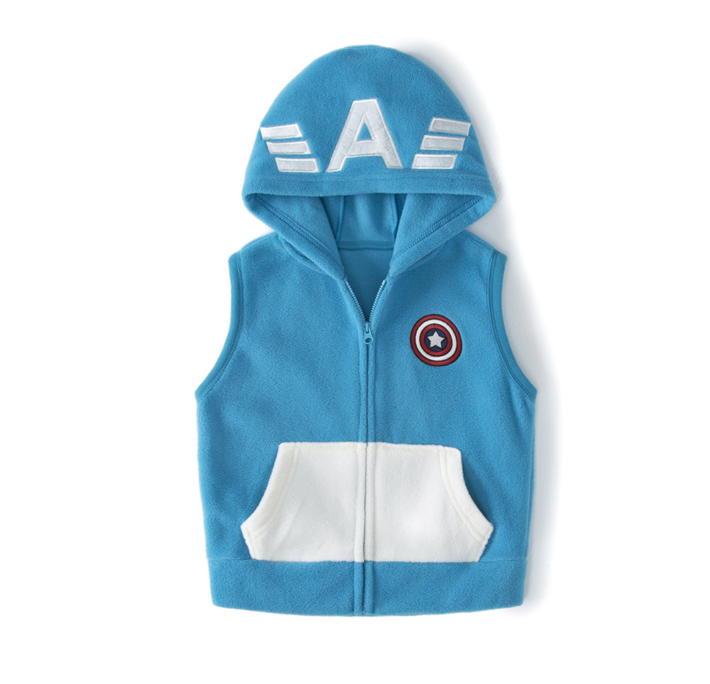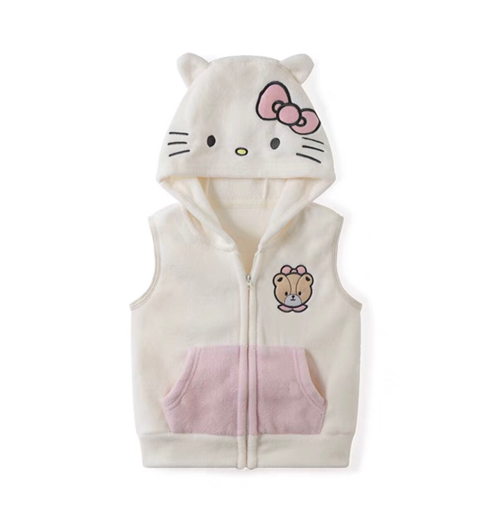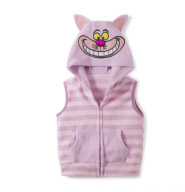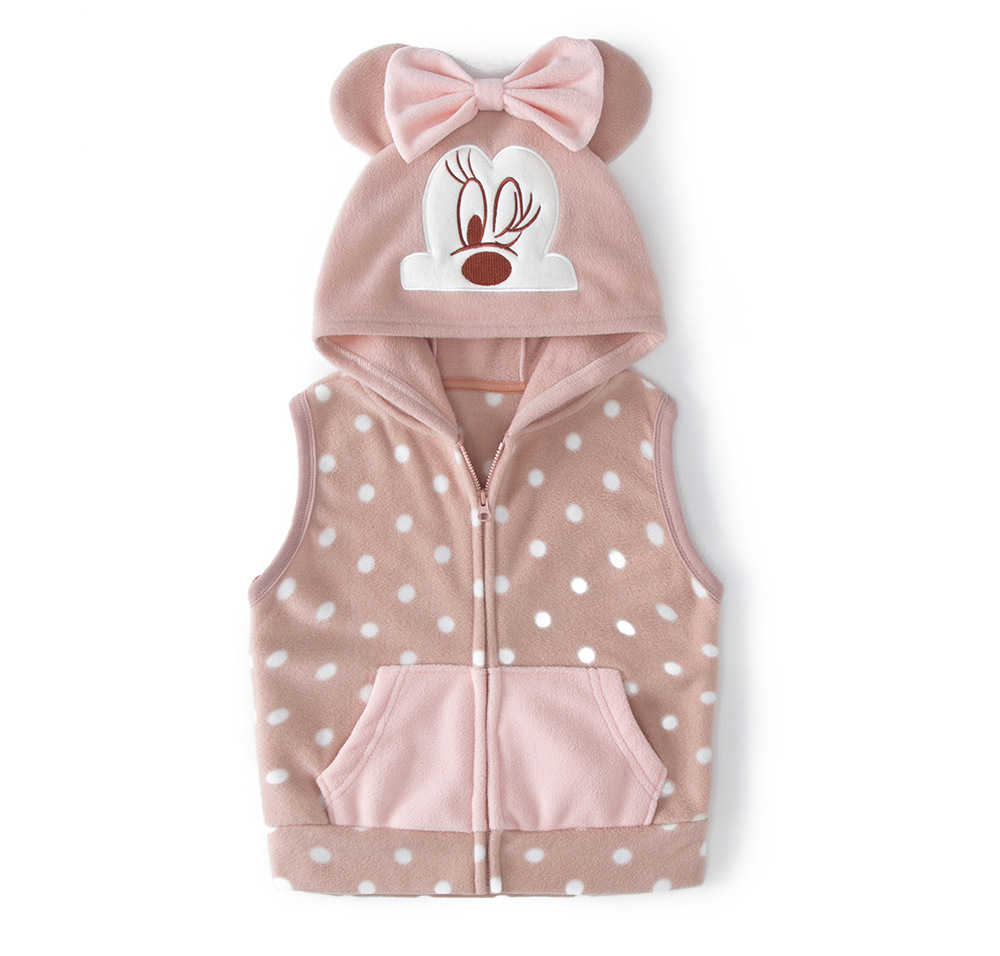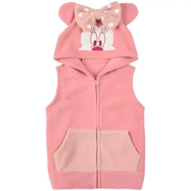 일본 어린이 극지 양털 조끼 가을과 겨울 소년과 소녀 만화 모자 양복 조끼 따뜻한 지퍼 90-150