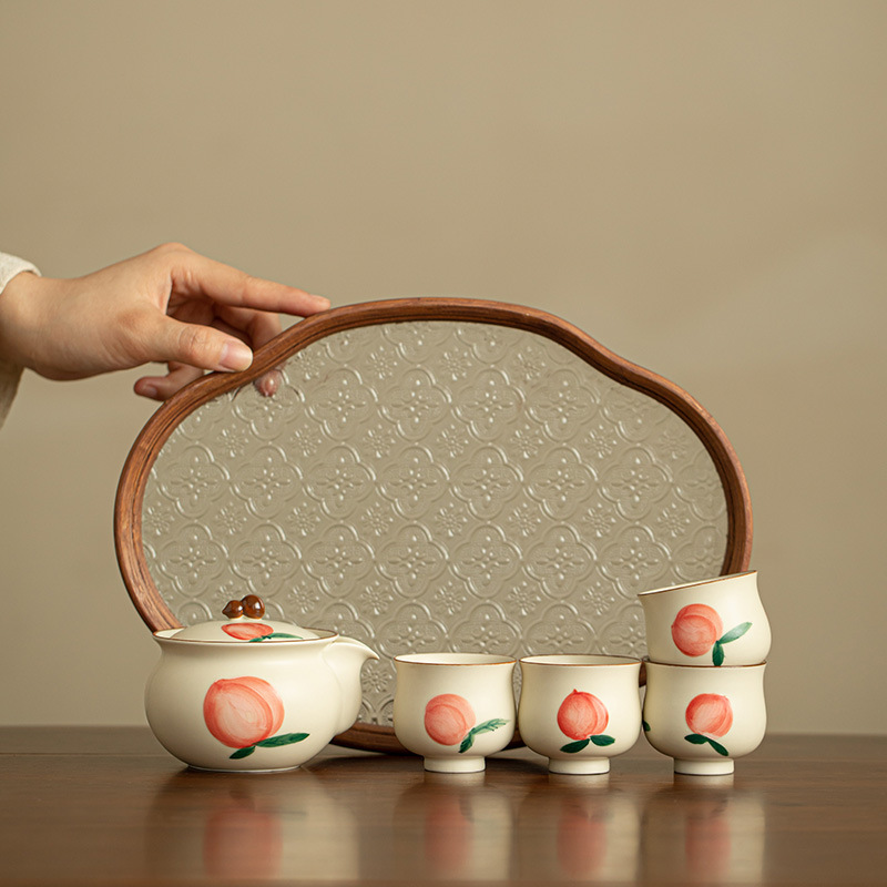 Jingdezhen 크림 노란색 손으로 그린 주전자 찻잔 드라이 버블 플레이트 세라믹 차 세트 세트 휴대용 냄비 티 컵 가정용스토어 가기