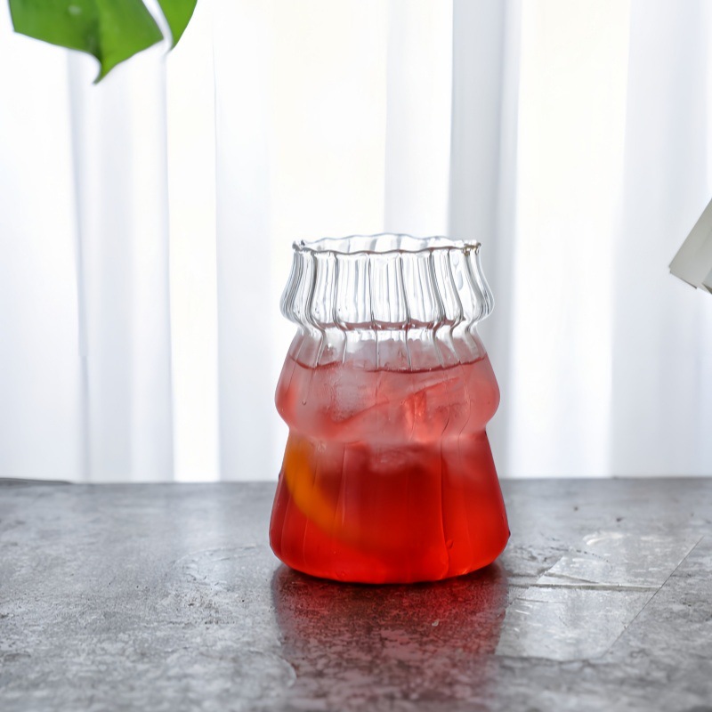 투명한 수직 패턴 크리스마스 컵 붕규산염 내열성 가정용 우유 주스 컵 유리 커피 아이스 아메리칸 라떼 컵
