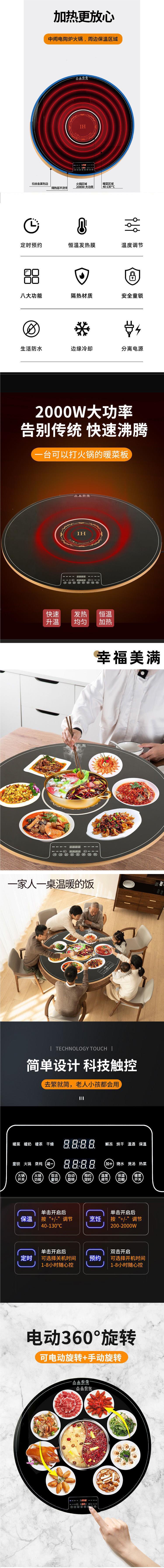 뜨거운 음식 절연 보드 따뜻한 커팅 보드 뜨거운 냄비 자동 회전 4 구역 난방 턴테이블 전기 가열 플레이트 유도 밥솥 전기 세라믹 스토브스토어 가기