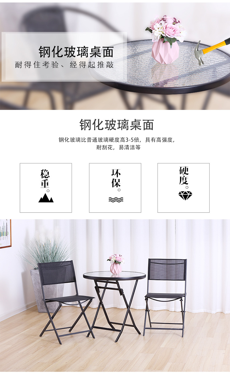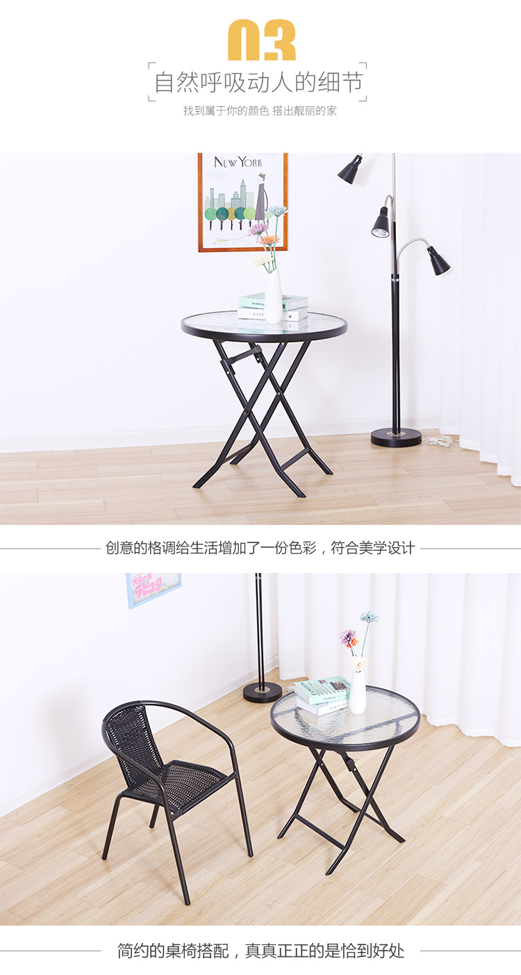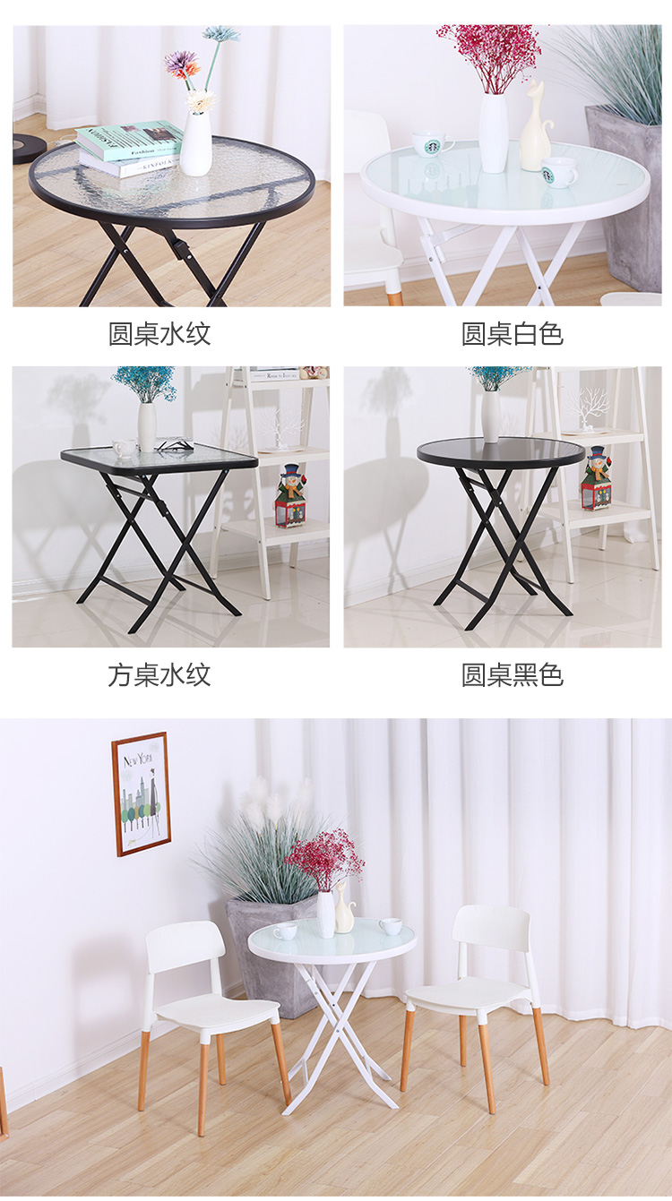 6R 야외 접이식 테이블 강화 유리 표면 라운드 테이블 스퀘어 테이블 발코니 테이블 우유 차 가게 가구 식탁 편리한 작은 라운드스토어 가기