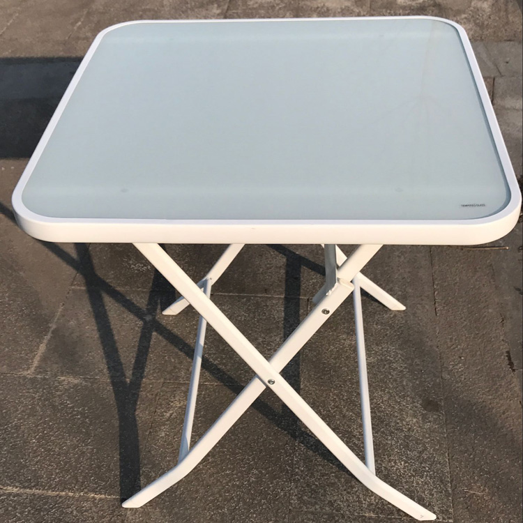 6R 야외 접이식 테이블 강화 유리 표면 라운드 테이블 스퀘어 테이블 발코니 테이블 우유 차 가게 가구 식탁 편리한 작은 라운드