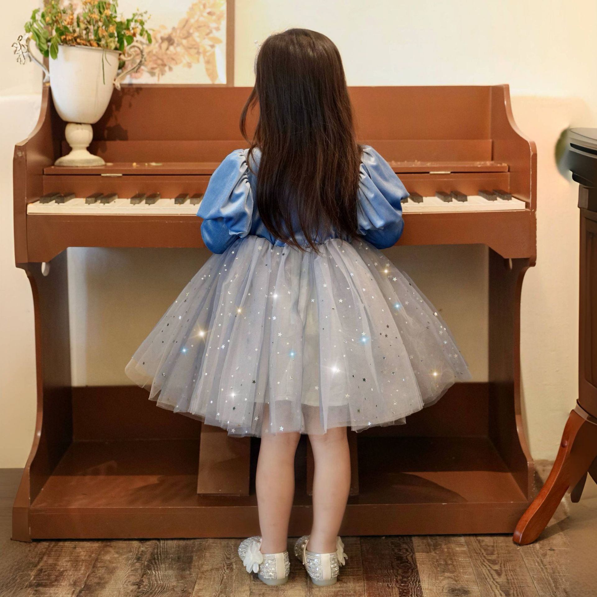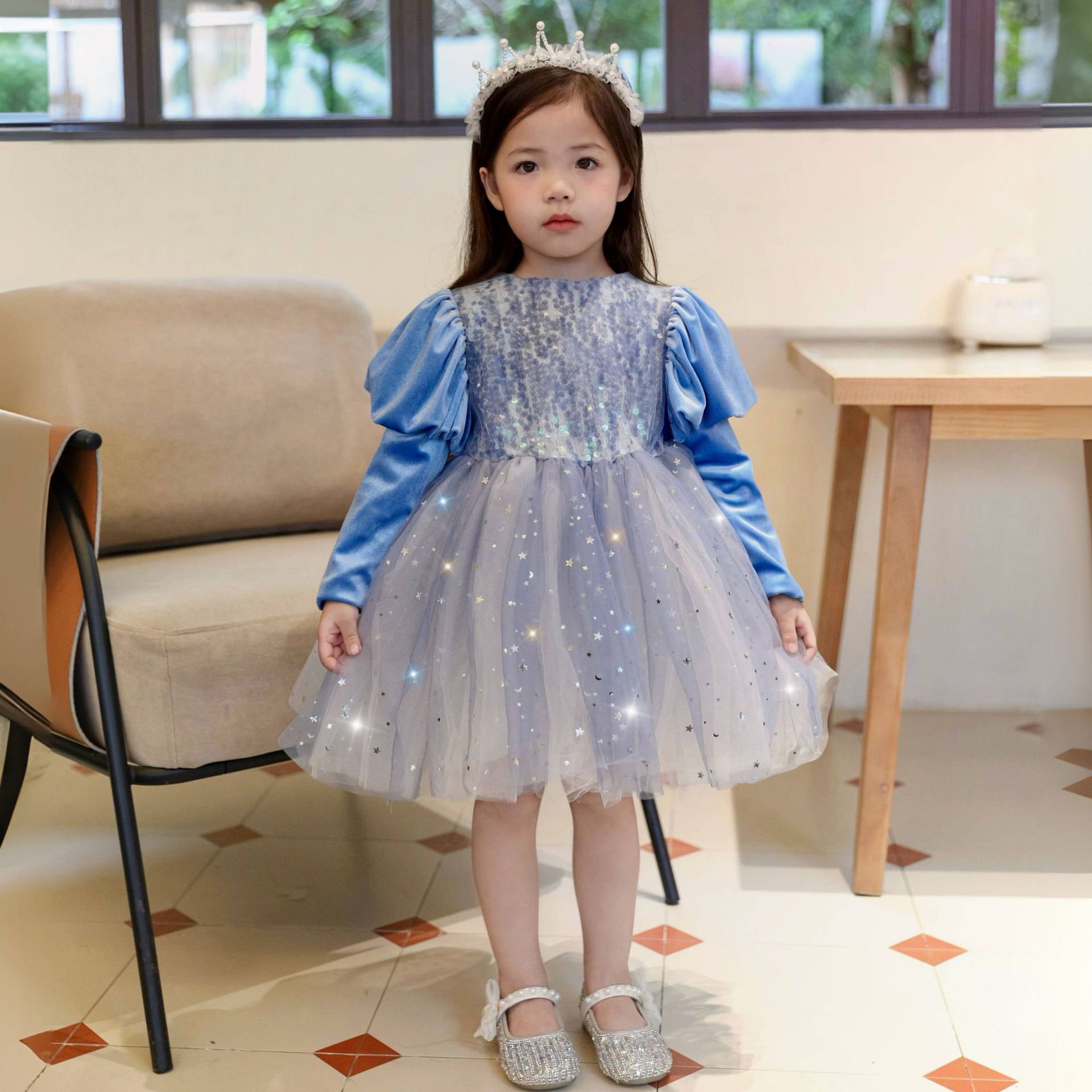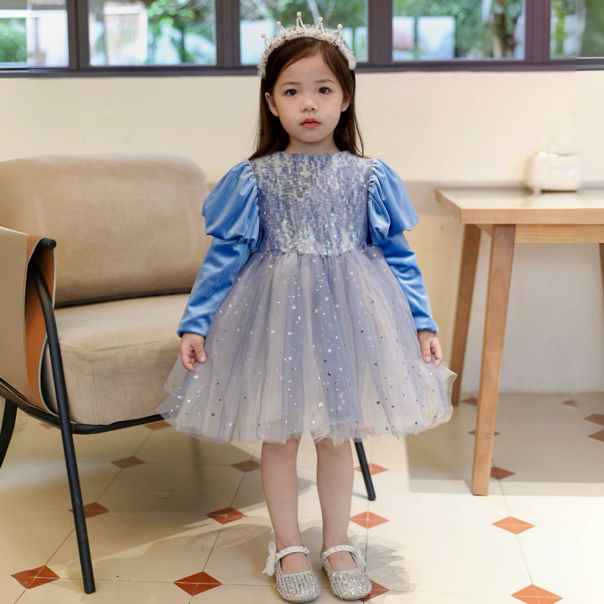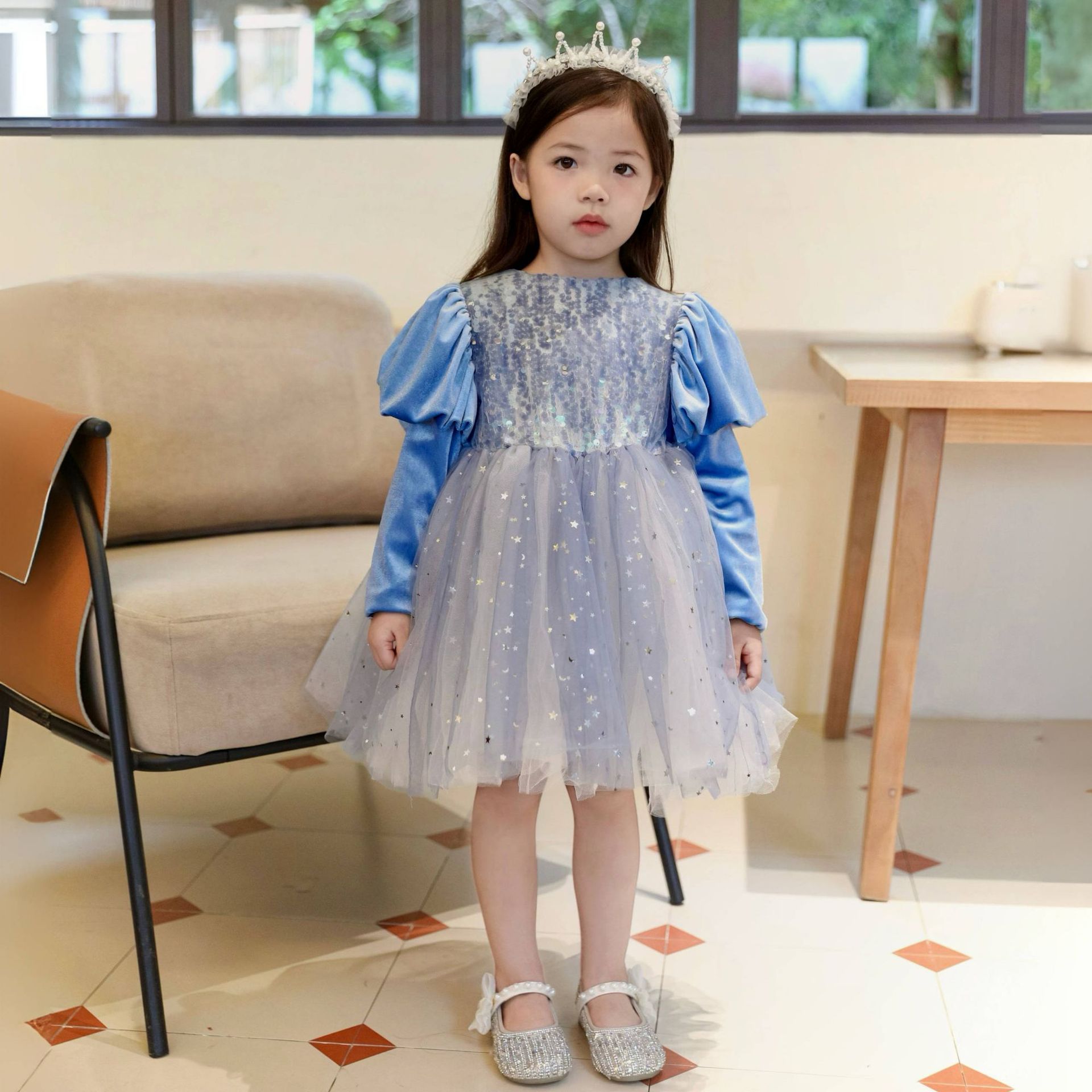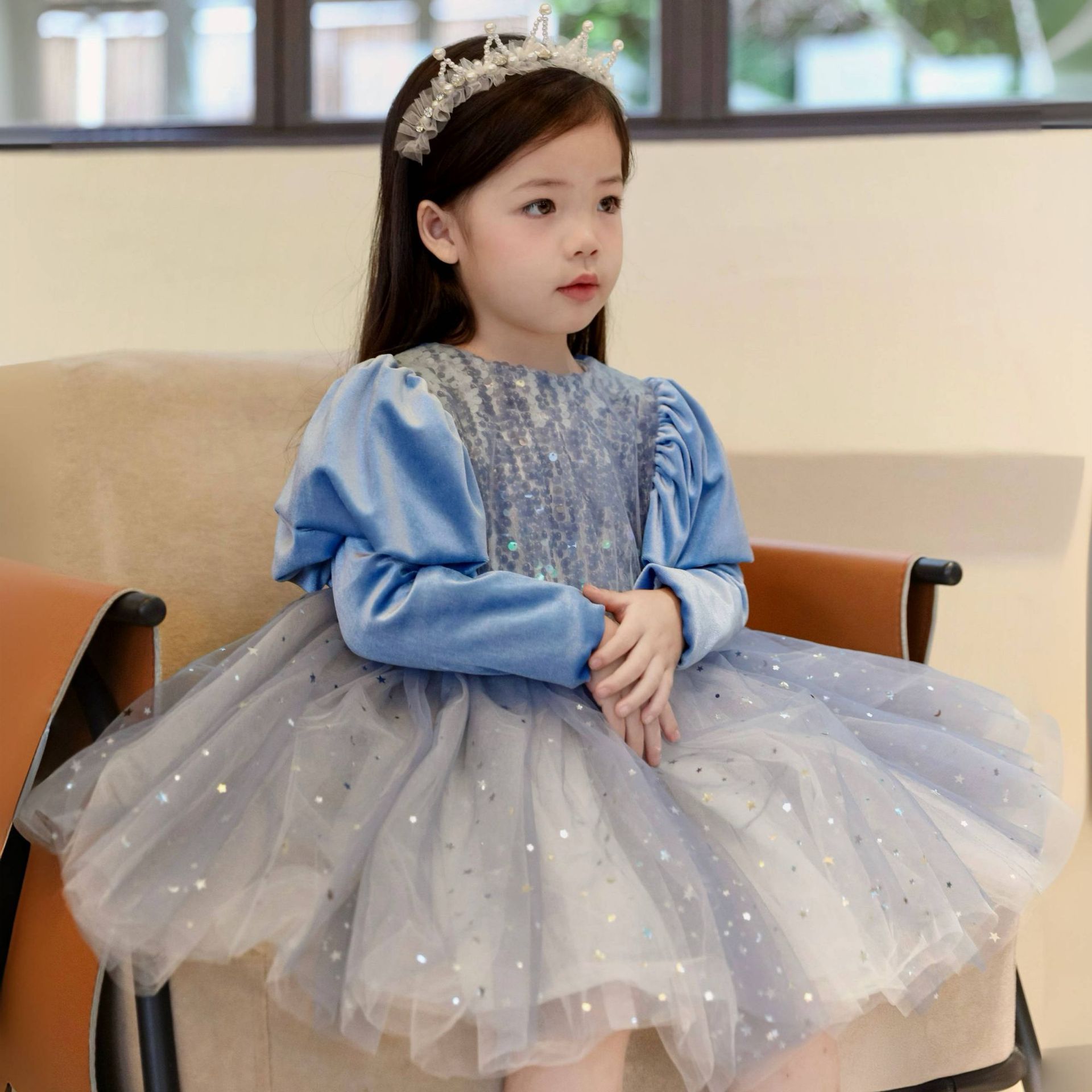 소녀 기모 아이샤 원피스 2024 가을과 겨울 새 소녀 스파클링 스팽글 메쉬 공주 원피스 크리스마스 원피스스토어 가기