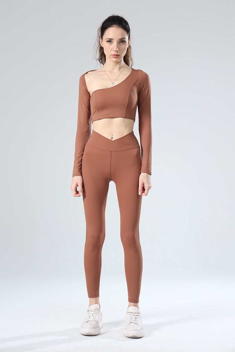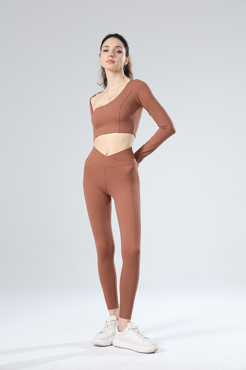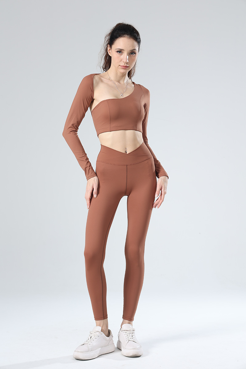 새로운 풀오버 나일론 스타일 요가 세트 해부 절단 스포츠 피트니스 패브릭 가슴 패드와 섹시한 긴 소매 여성 루