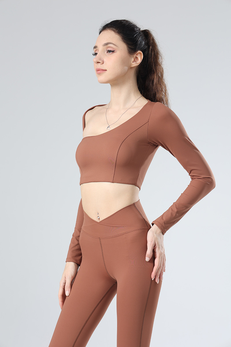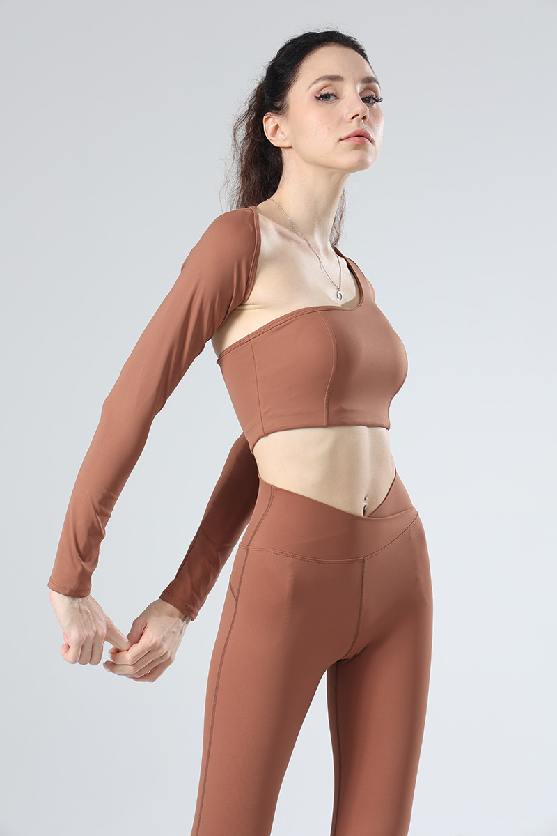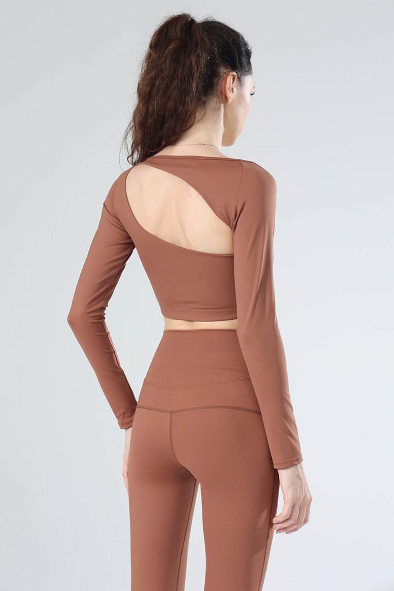 새로운 풀오버 나일론 스타일 요가 세트 해부 절단 스포츠 피트니스 패브릭 가슴 패드와 섹시한 긴 소매 여성 루스토어 가기