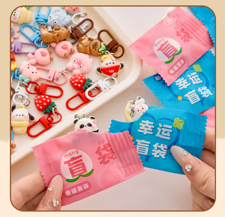 만화 키 체인 작은 블라인드 가방 어린이 귀여운 미니 깜짝 블라인드 가방 높은 색상 가치 DIY 장식 펜던트 선물