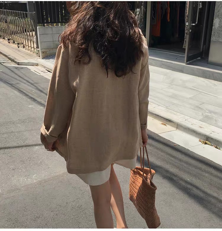 2023 이른 가을 새 한국 사이버 연예인 면화 및 리넨 세트 재킷 여성 한국 스타일 느슨한 리넨 작은 세트 영국 스타일스토어 가기
