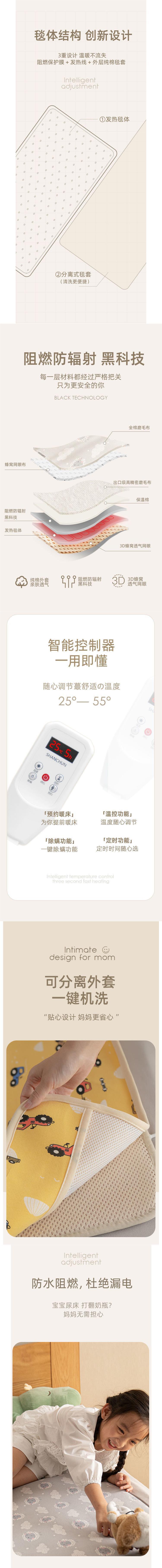 산춘 어린이 특수 전기 담요 정품 단일 소형 전기 매트리스 아기 전기 가열 패드 자동 전원 차단 온도 조정스토어 가기
