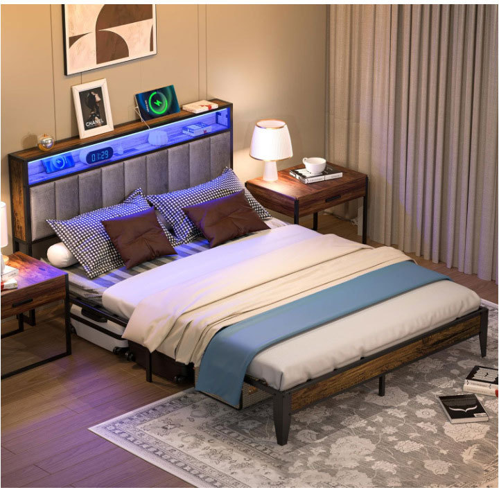 철제 침대 아파트 주택 체류 산업 바람 싱글 더블 철 프레임 침대 공장 강철 나무 두꺼운 임대 그물 빨간 침대스토어 가기
