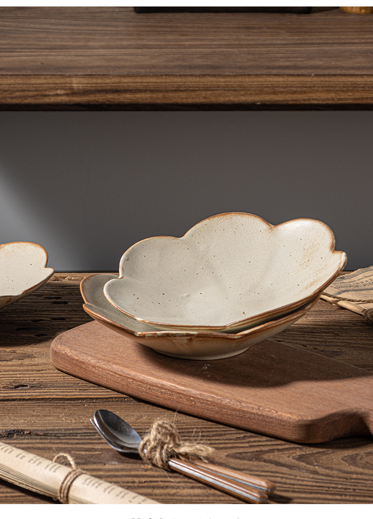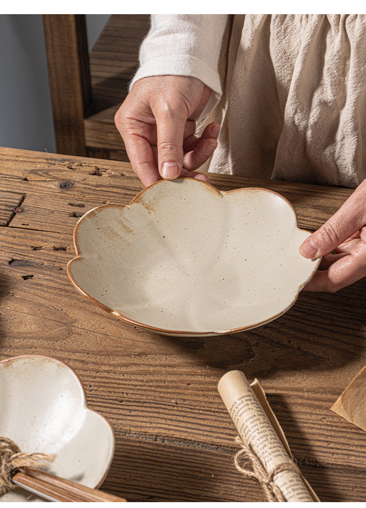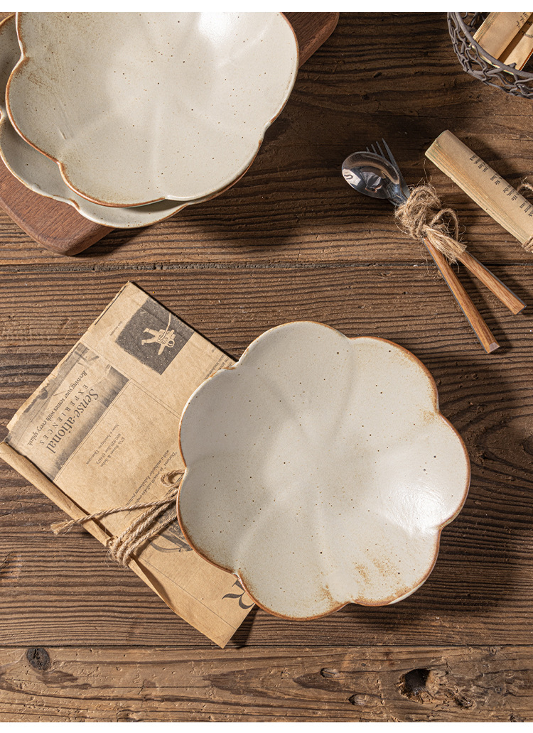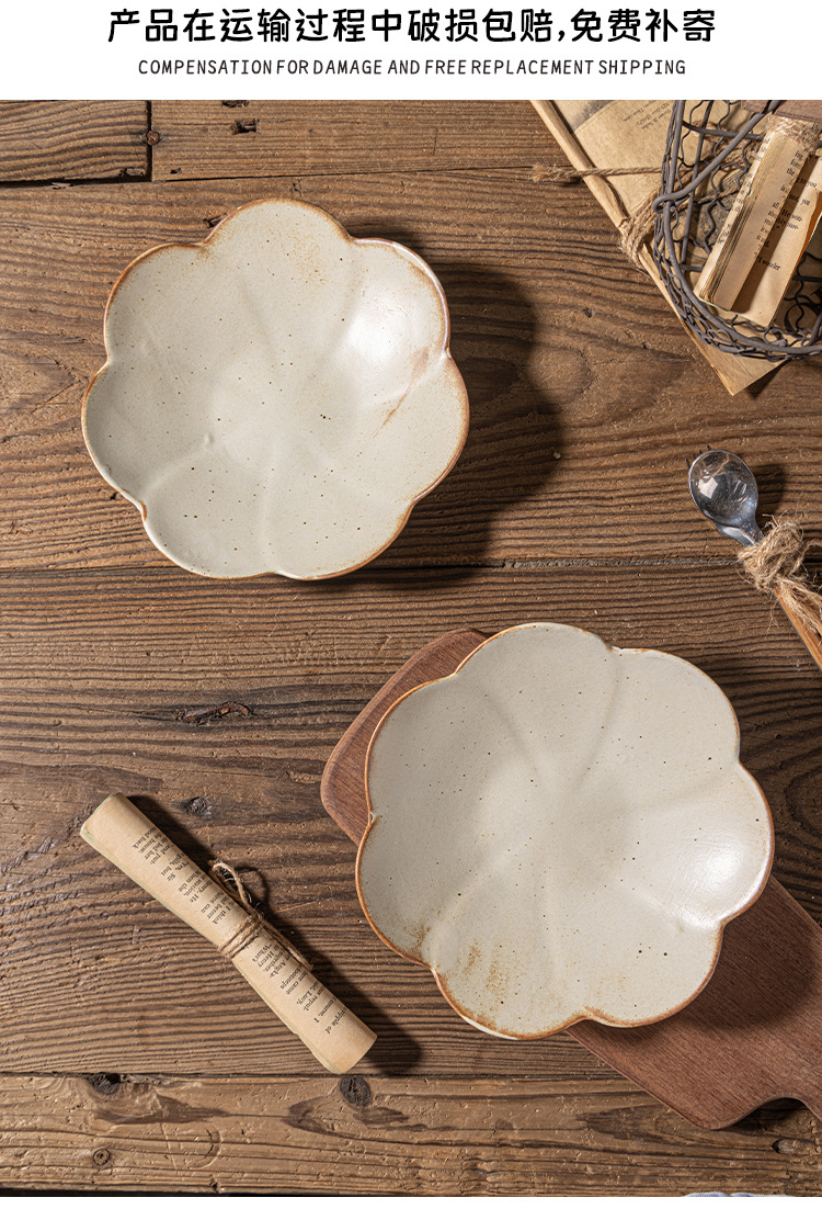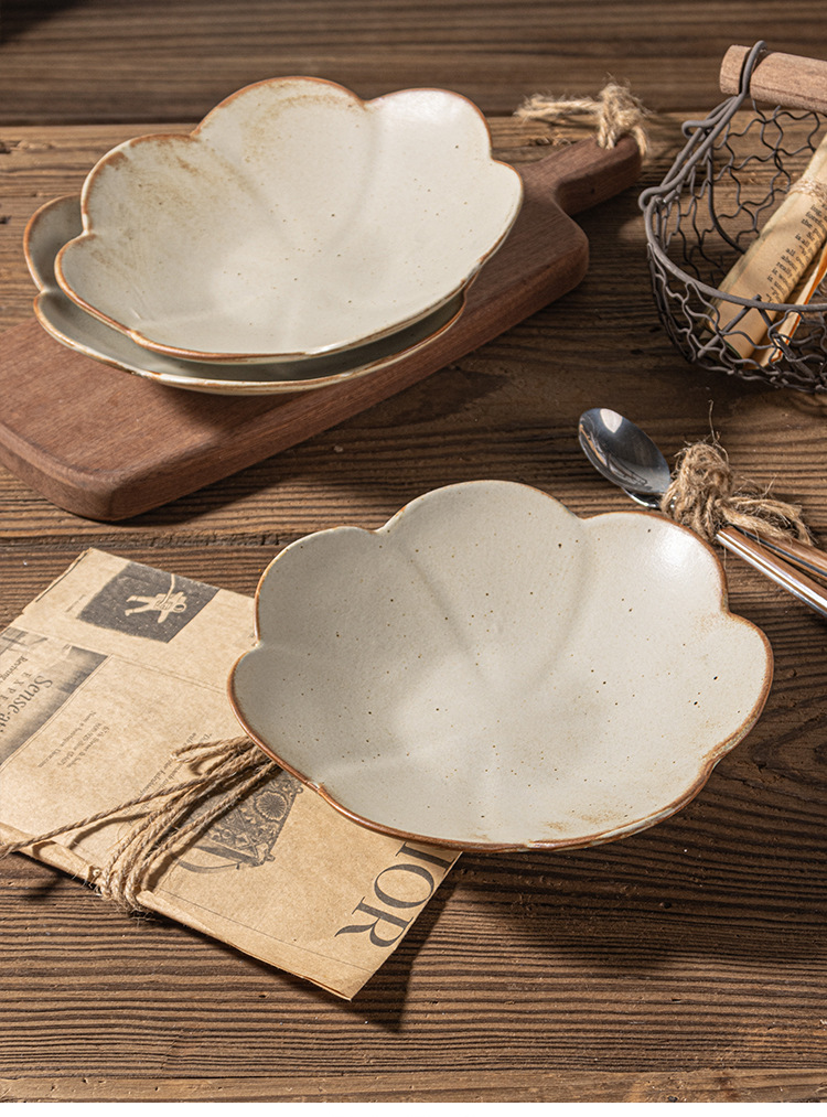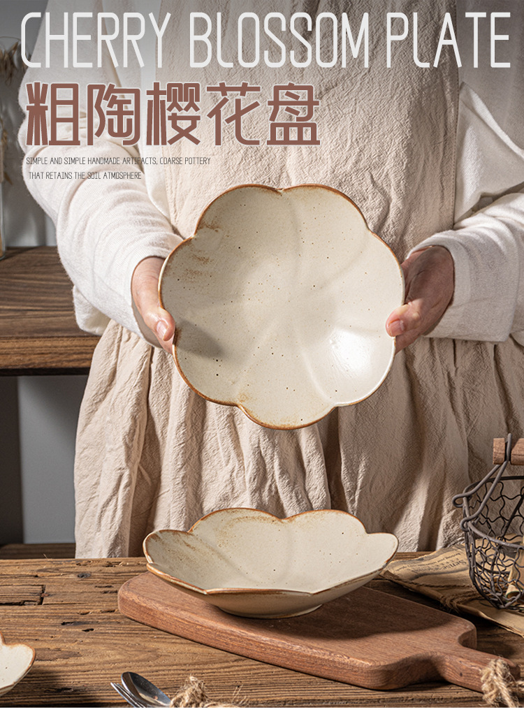 인터넷 축하 레스토랑 일본 빈티지 조잡한 벚꽃 접시 세트 디너 플레이트 가정용 접시 세라믹 식기 호텔 도매