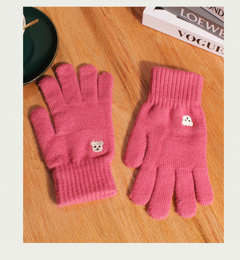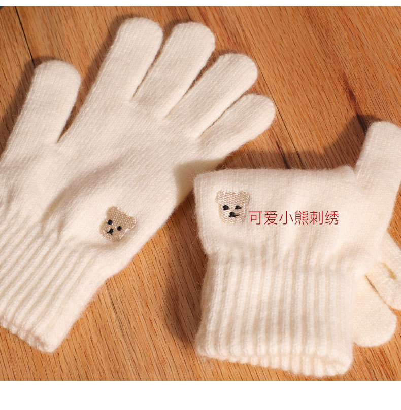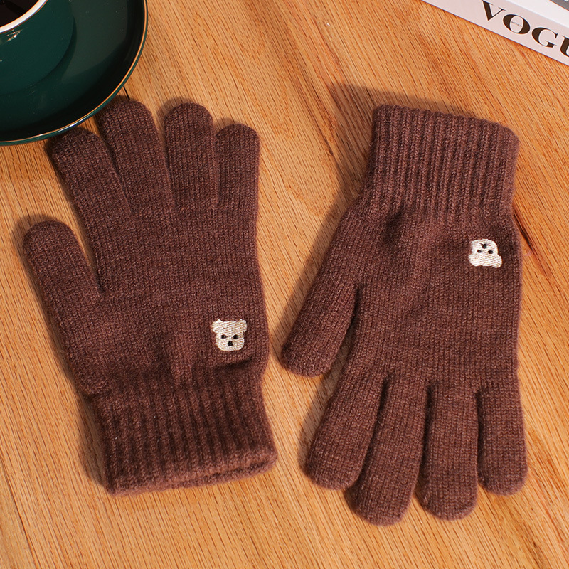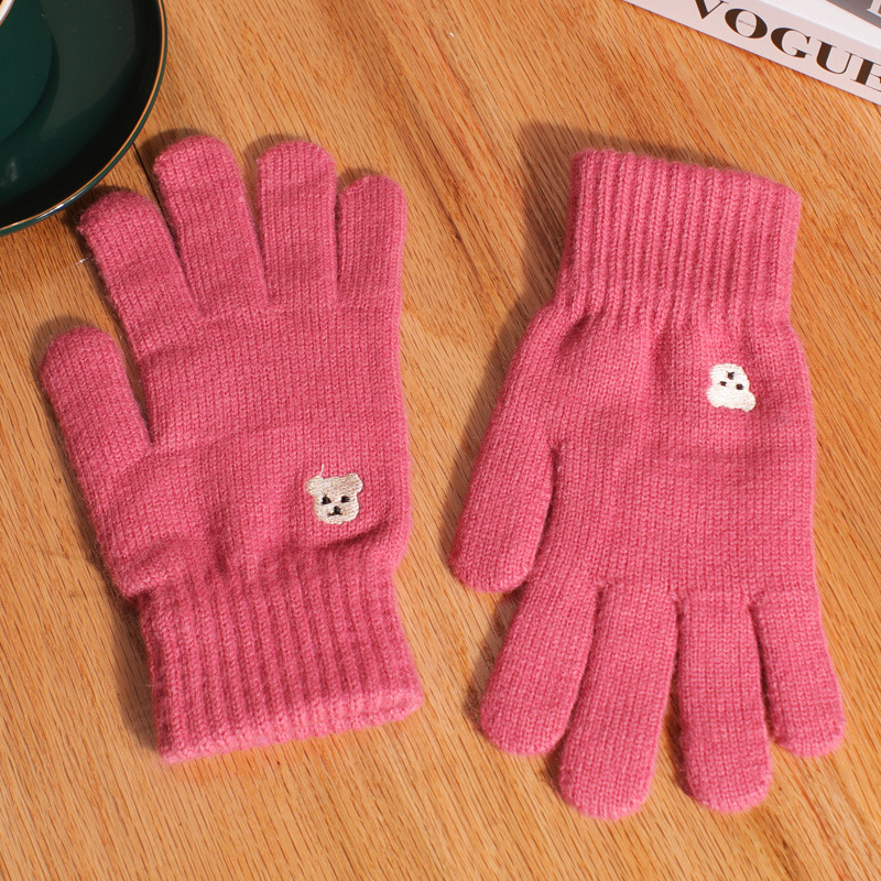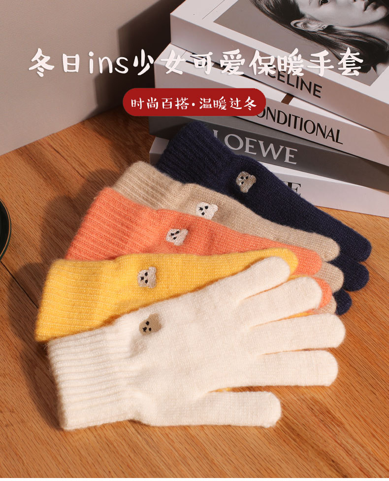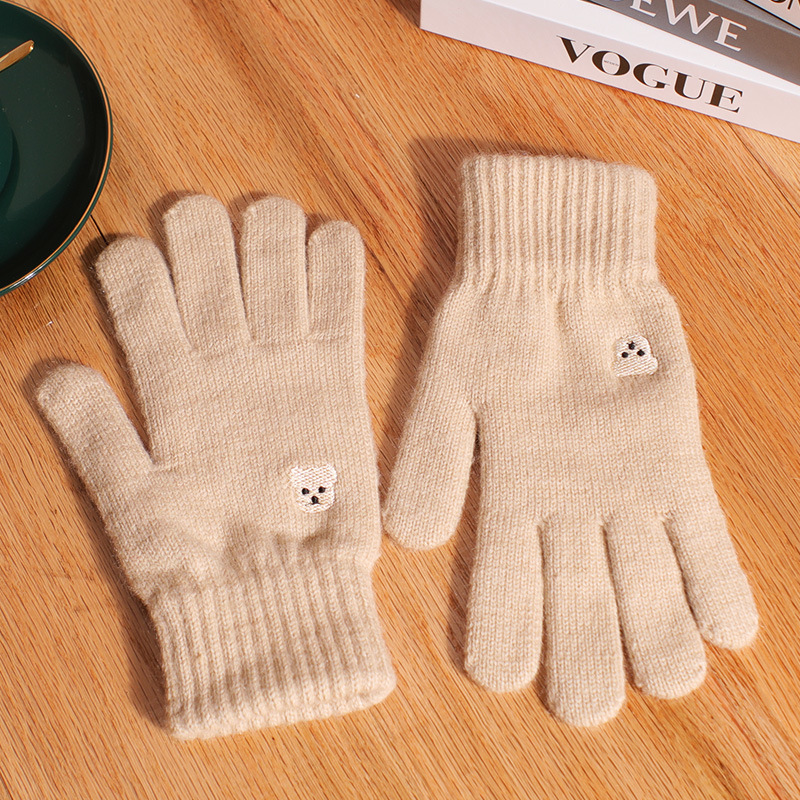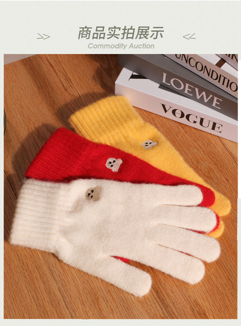 국경 간 귀여운 곰 장갑 여성 니트 터치 스크린 학생 장갑 가을과 겨울 조커 두꺼운 따뜻한 장갑 도매