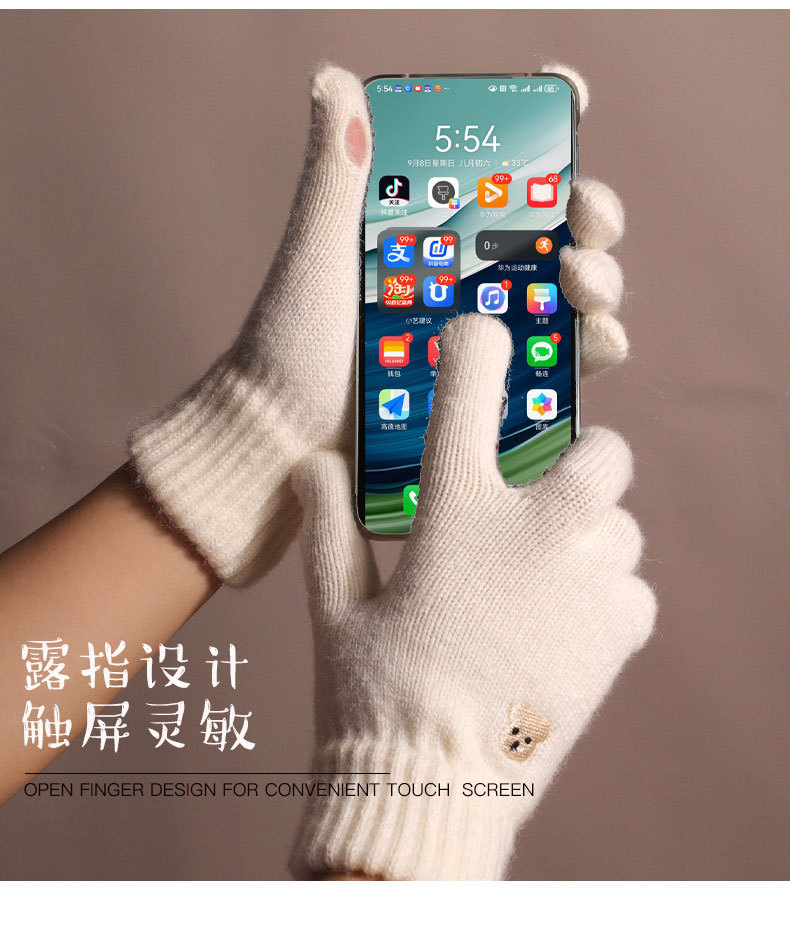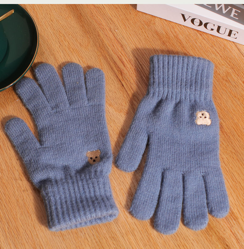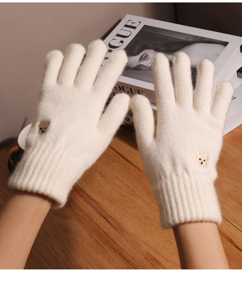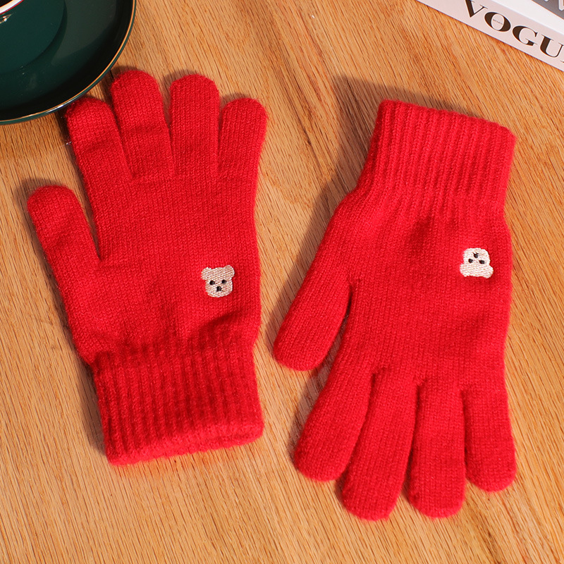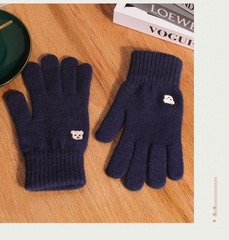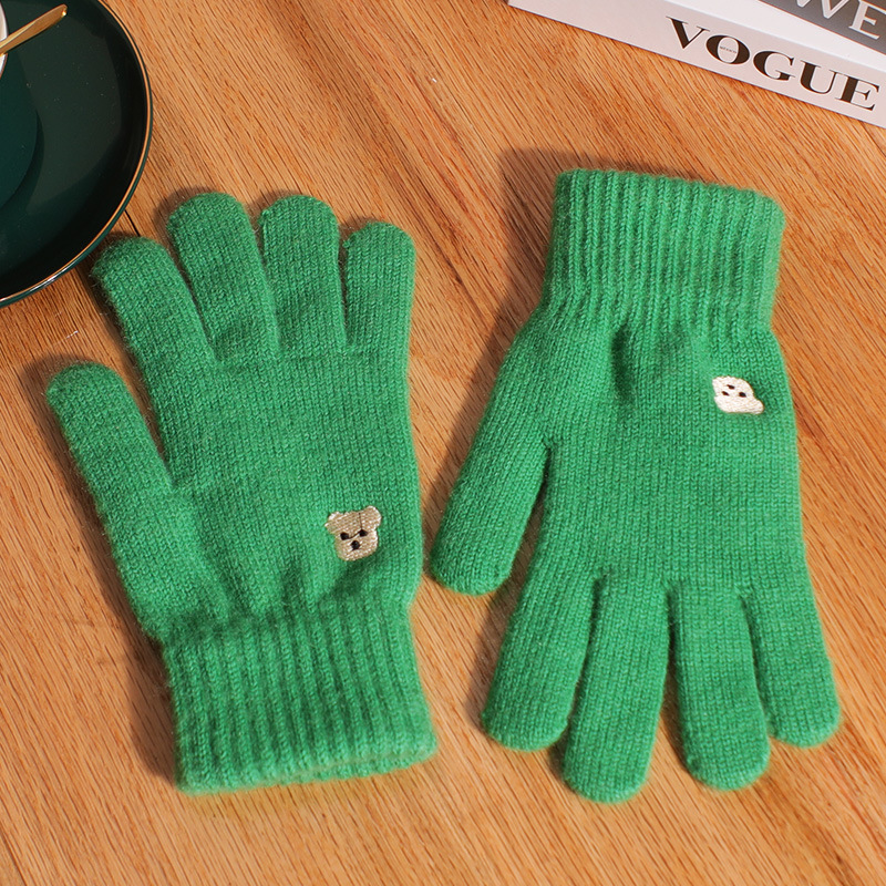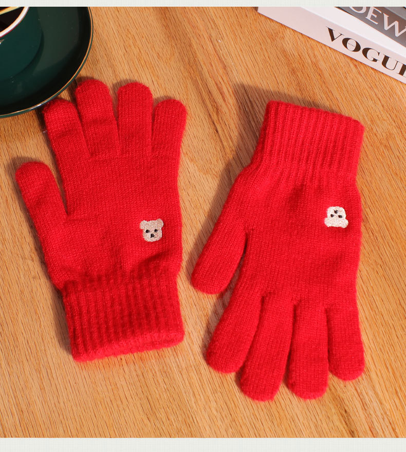 국경 간 귀여운 곰 장갑 여성 니트 터치 스크린 학생 장갑 가을과 겨울 조커 두꺼운 따뜻한 장갑 도매