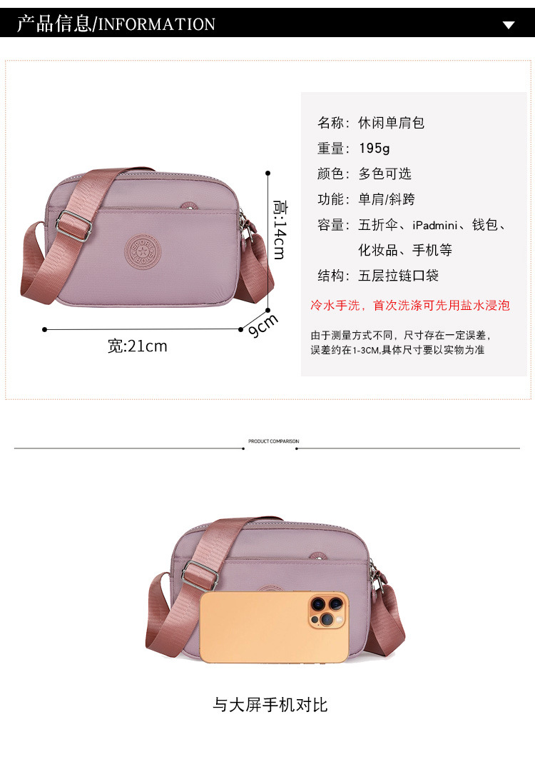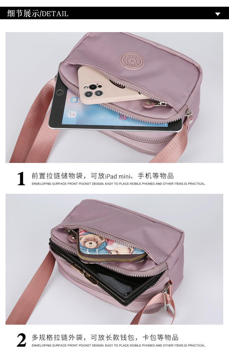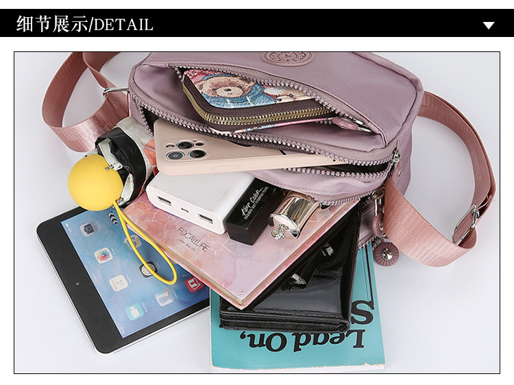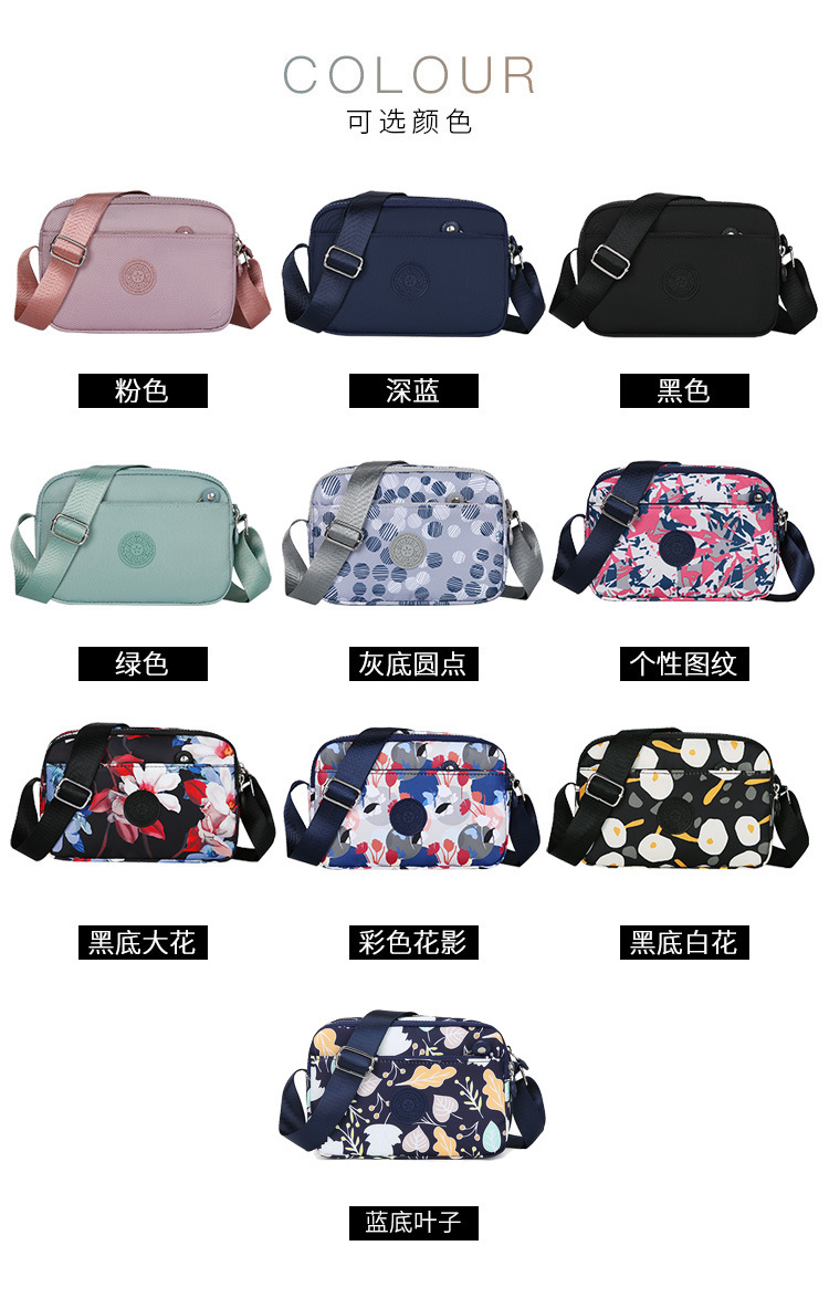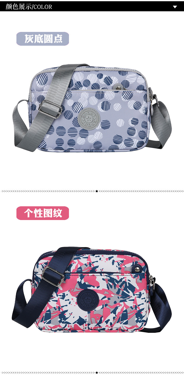 새로운 여성 캐주얼 메신저 가방 방수 내마모성 패턴 단색 나일론 천 어깨 가방 시어머니 가방 도매 국경스토어 가기